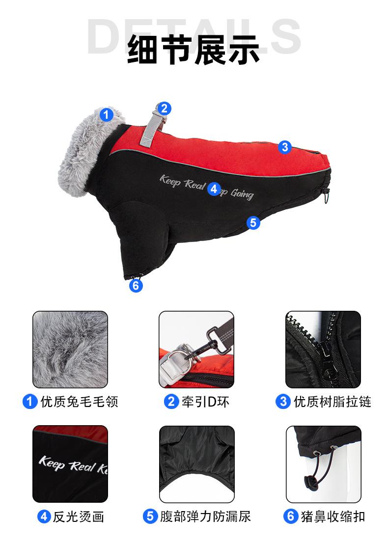 Nueva ropa para mascotas transfronteriza con forro polar engrosado a prueba de viento e impermeable, ropa reflectante para perros medianos y grandes al por mayor