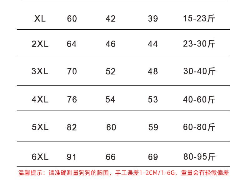 Xl( 7.5-11.5kg ) bust 60cm back length 39cm, 2xl ( 11.5-15kg ) bust 64cm back length 44cm, 3xl ( 15-20kg ) bus...