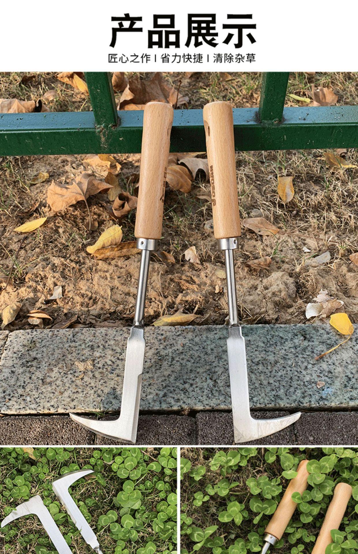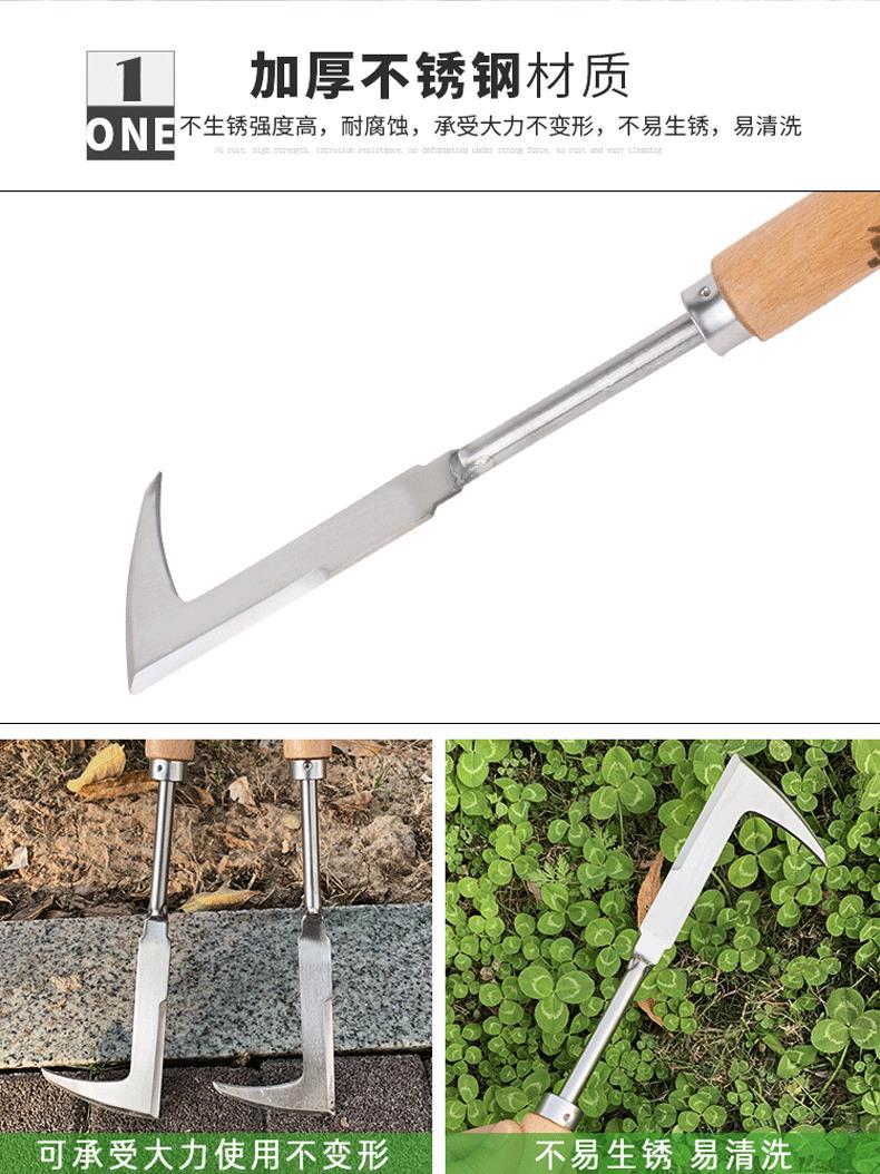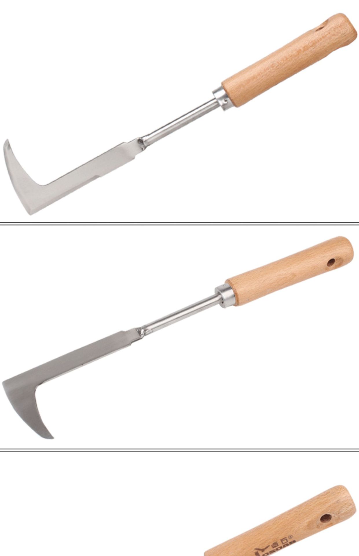 Gap weeding knife with wooden handle, Hook-shaped grass puller