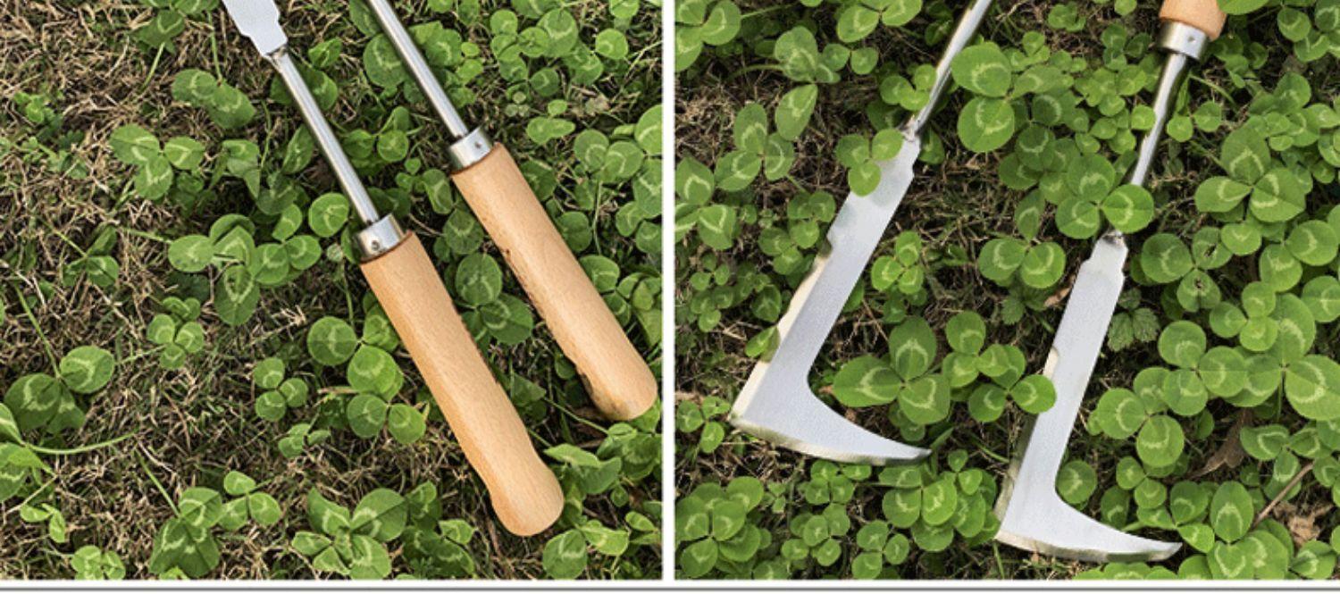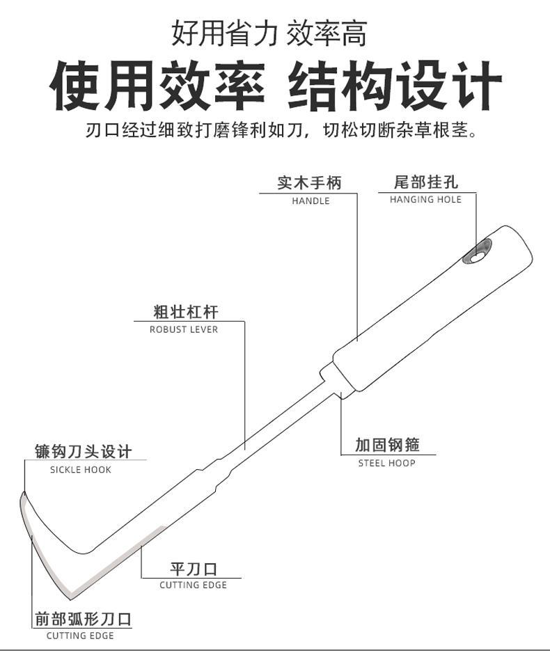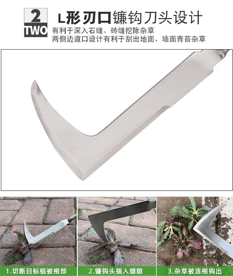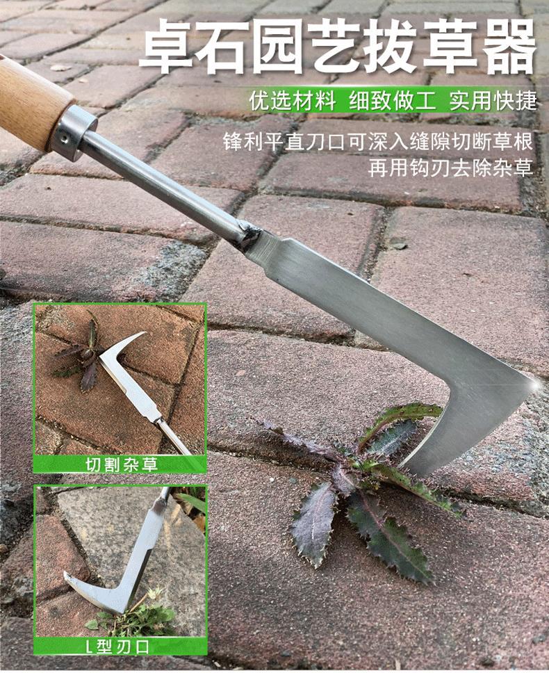 Gap weeding knife with wooden handle, Hook-shaped grass puller