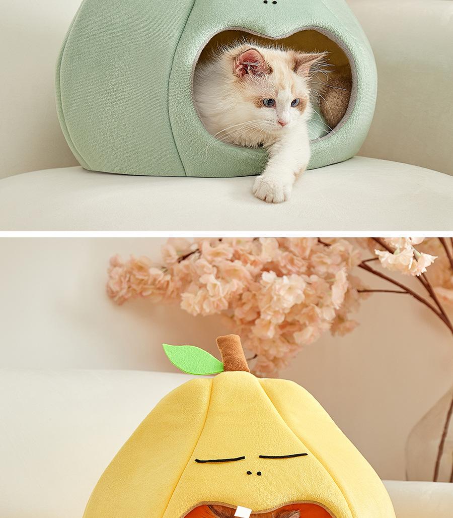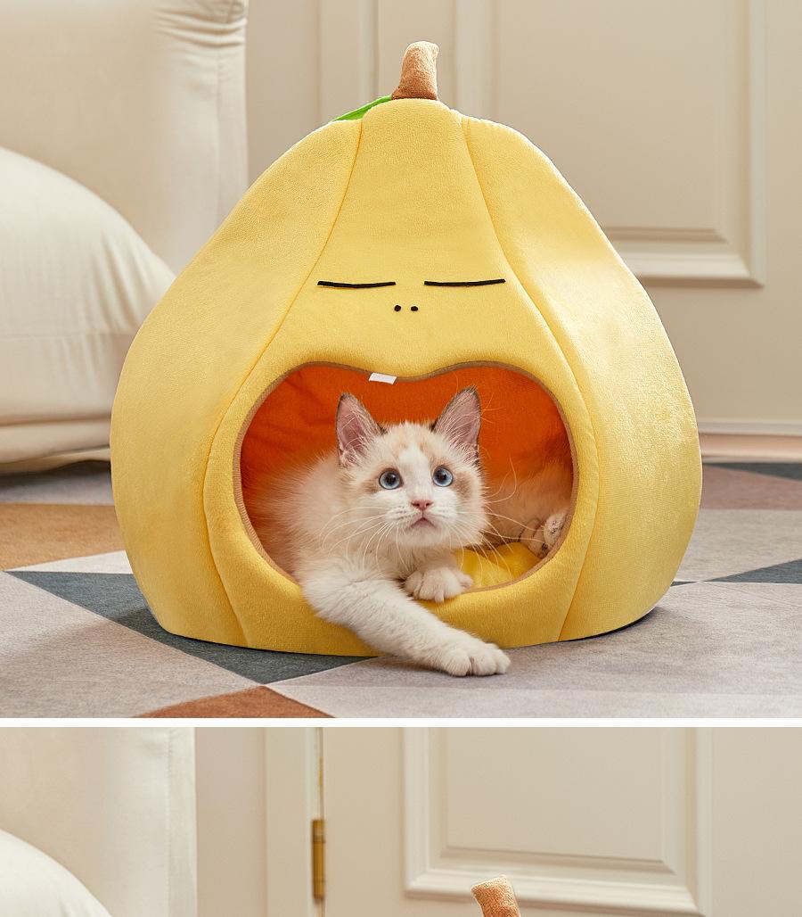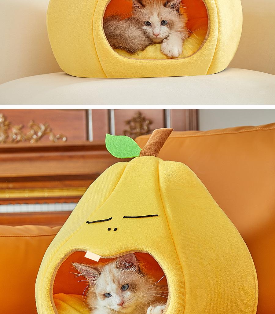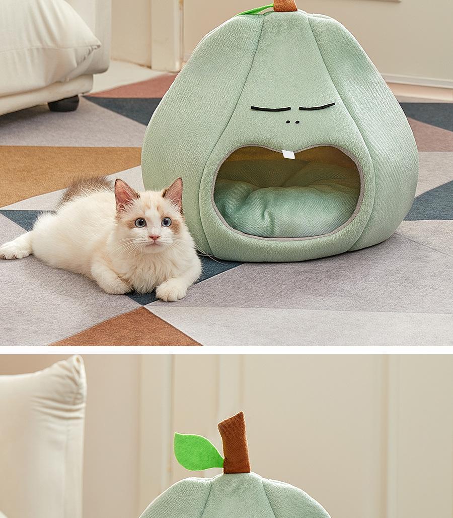 Cama para gato para invierno cálida semicerrada cama de pera de pato para dormir gato cama para perro cama para gato suministros para mascotas universal para todas las estaciones