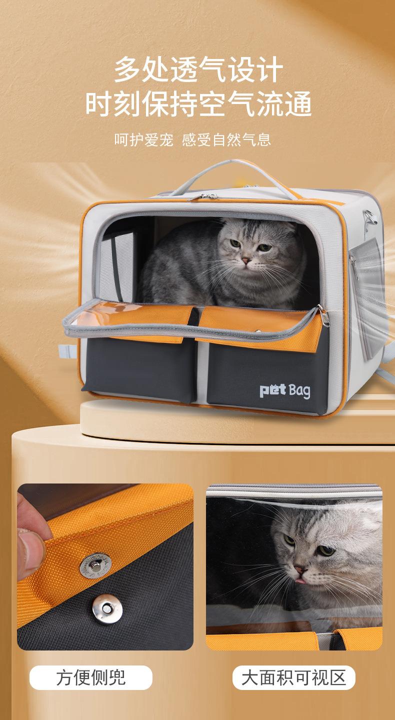 Bolsa para gatos, bolsa de salida, mochila portátil de gran capacidad y transpirable para mascotas, bolso bandolera portátil de gran espacio para mascotas con barra de tracción