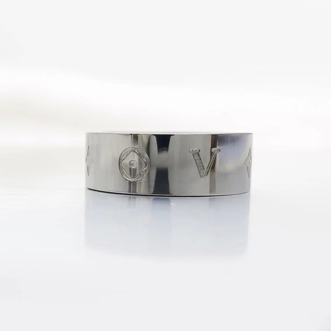 Nuevos Anillos de Pareja de Acero de Titanio Color Gun Trendy con Anillos con Logotipo L Dorado Versión Alta
