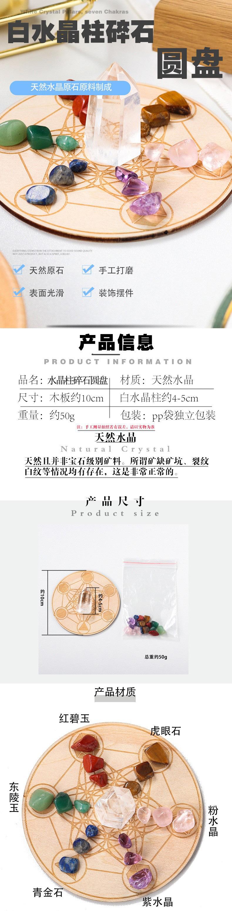 Plato de Madera de Cristal Natural Columna de Cristal Blanco Grava de Piedra Original Gema Colorida Traje Adornos de Cristal de Matriz de Siete Estrellas Venta al por Mayor
