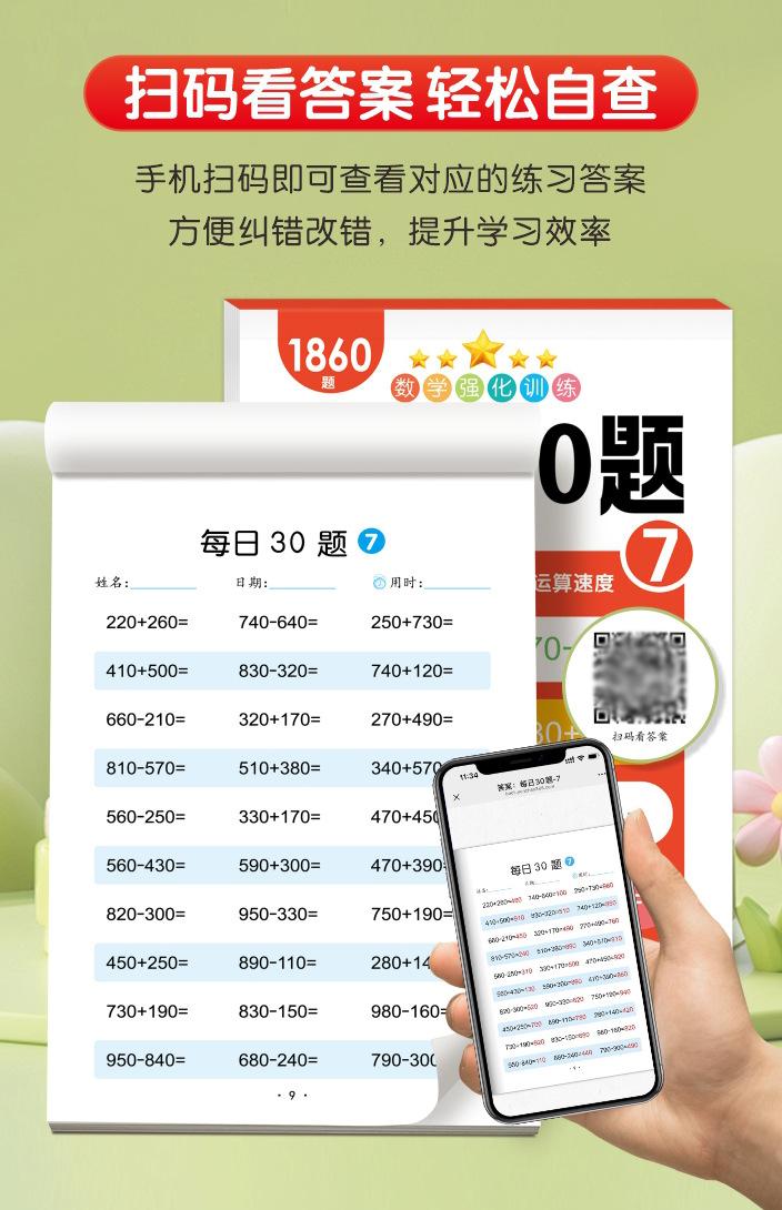 Entrenamiento intensivo de matemáticas 30 preguntas al día Práctica de cálculo oral todos los días para mejorar la capacidad de cálculo Velocidad de cálculo Escanee el código para ver las respuestas