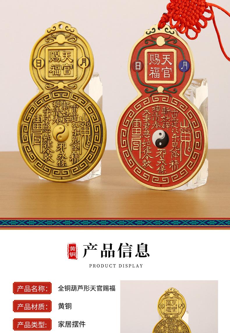 Copper color small gourd-shaped blessing from heavenly official, Copper natural color large gourd-shaped bless...