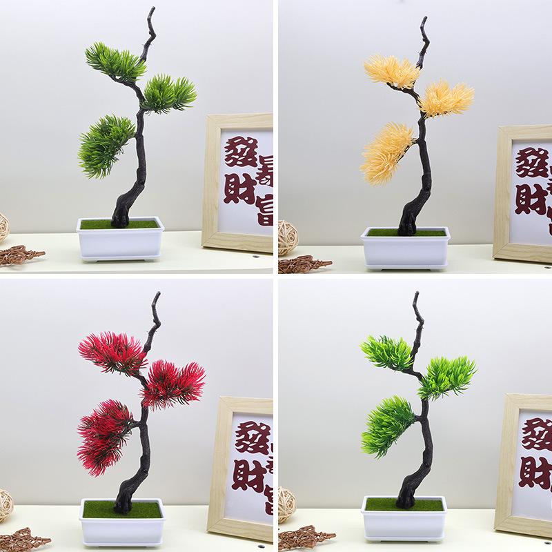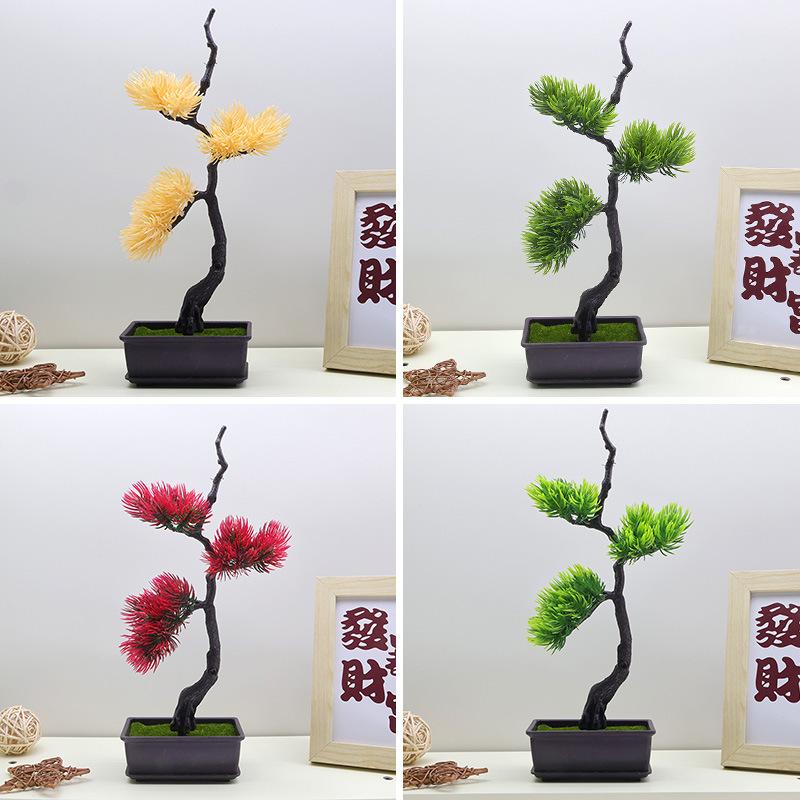Nueva simulación de belleza de agujas de pino, acantilado de pino, ciprés, pino, hojas de pino de bienvenida, árbol verde en maceta, paisaje chino, accesorios de paisajismo