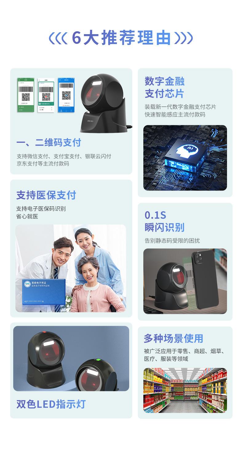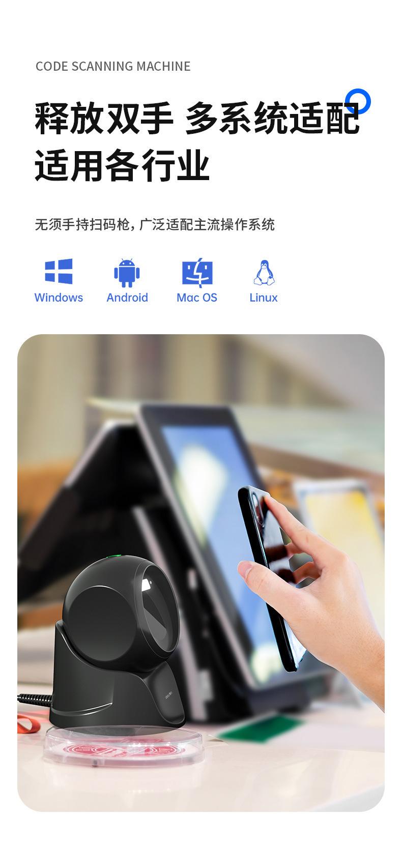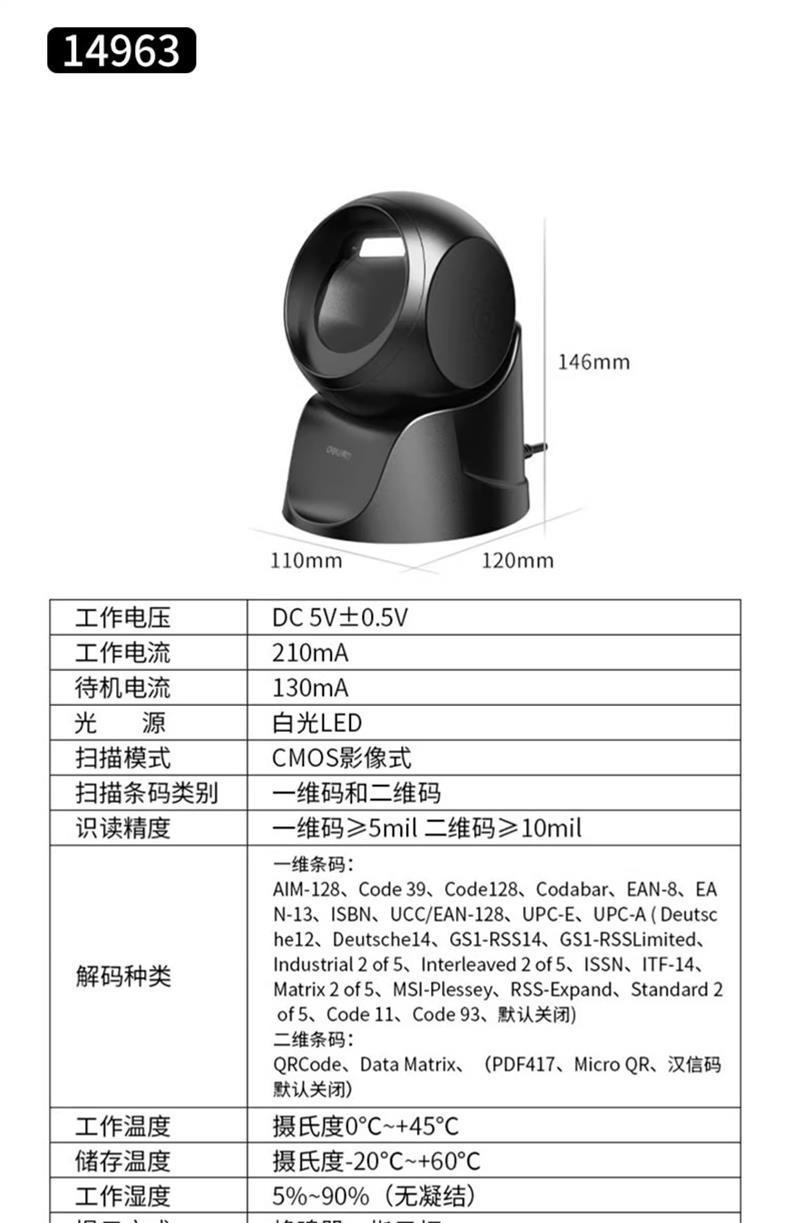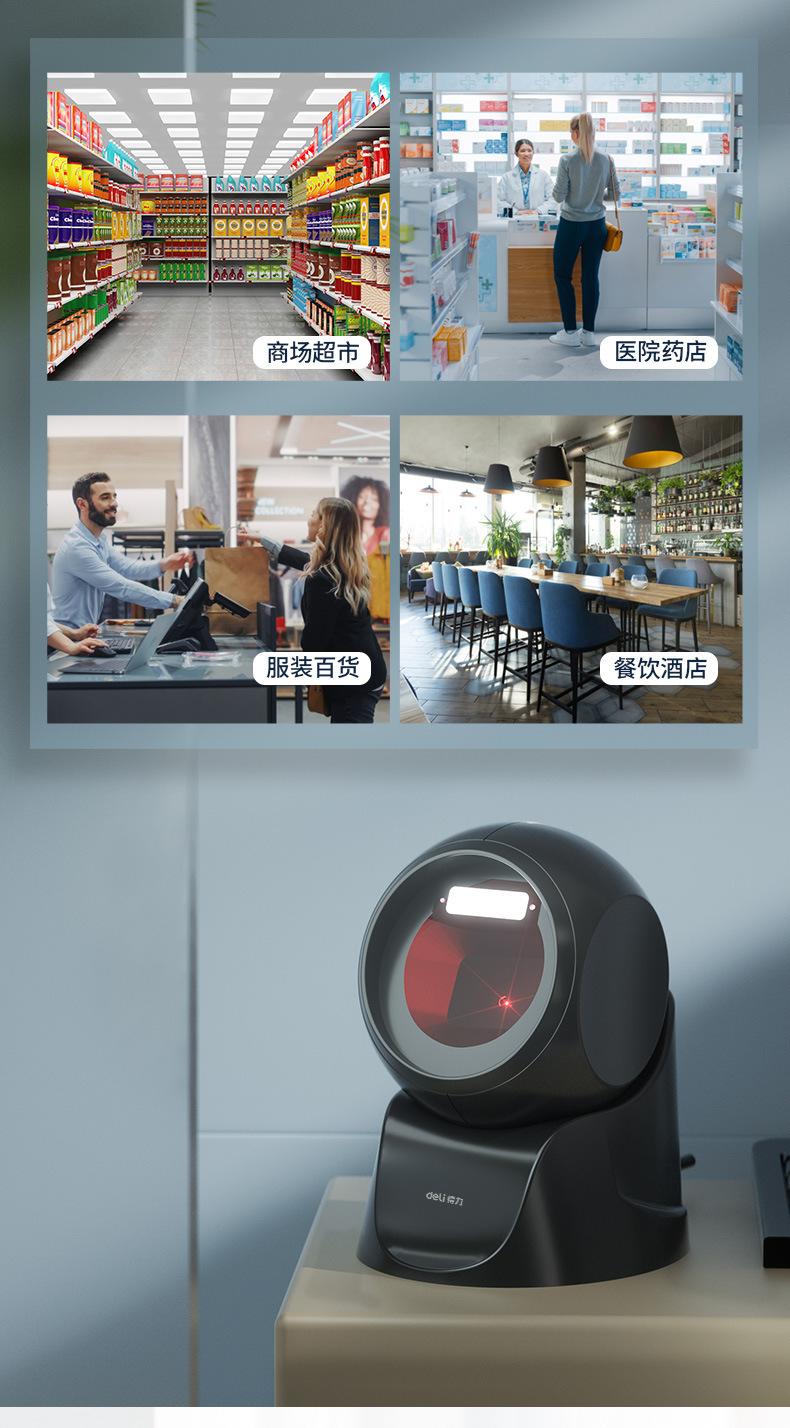 Escáner de plataforma de código unidimensional y bidimensional Deli 14963, bola de recolección, plataforma de escaneo de caja registradora de supermercado, pistola de escaneo de código