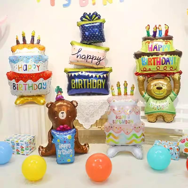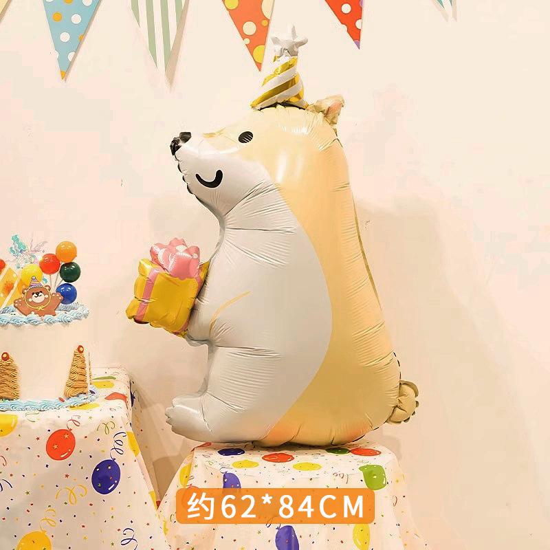 Lindo globo de película de aluminio con dibujos de animales para fiesta de cumpleaños, diseño de escena para fotos de fiesta de un año para niños