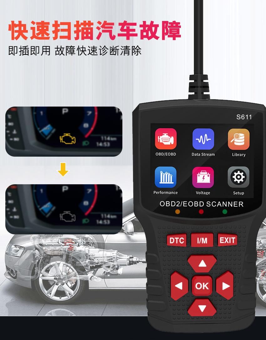S611 Herramienta de Diagnóstico de Coche OBD2 Detector Diagnóstico de Fallas de Motor Detección Flujo de Datos Prueba de Rendimiento