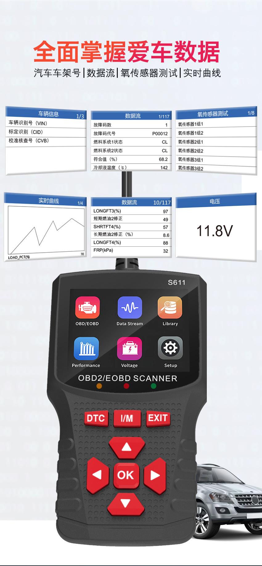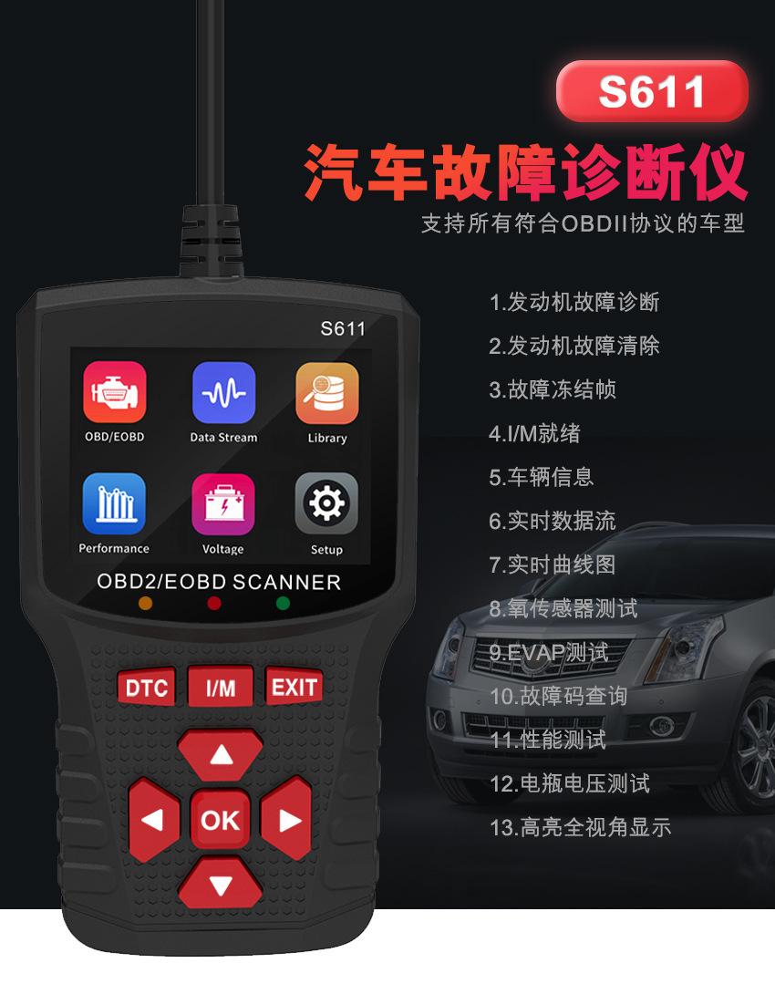 Compra S611 Herramienta de Diagnóstico de Coche OBD2 Detector Diagnóstico de Fallas de Motor Detección Flujo de Datos Prueba de Rendimiento al por mayor en Joom.pro