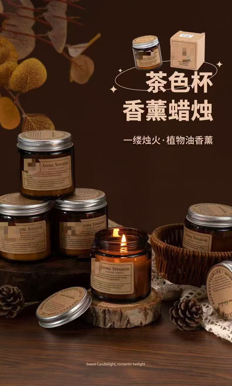 Handmade niche style brown glass scented candle wholesale souvenir smokeless romanticfor home fragrance candle cross-border