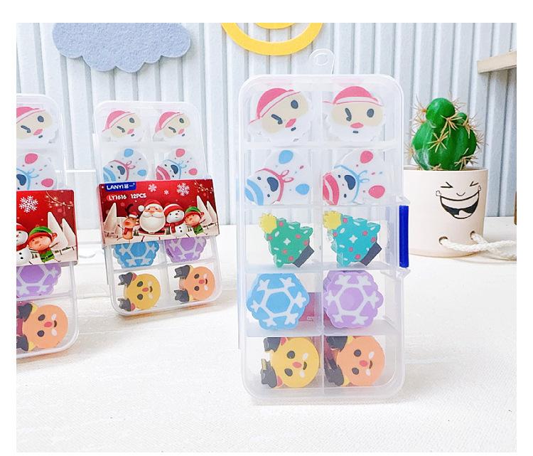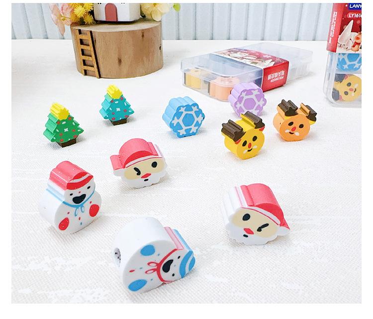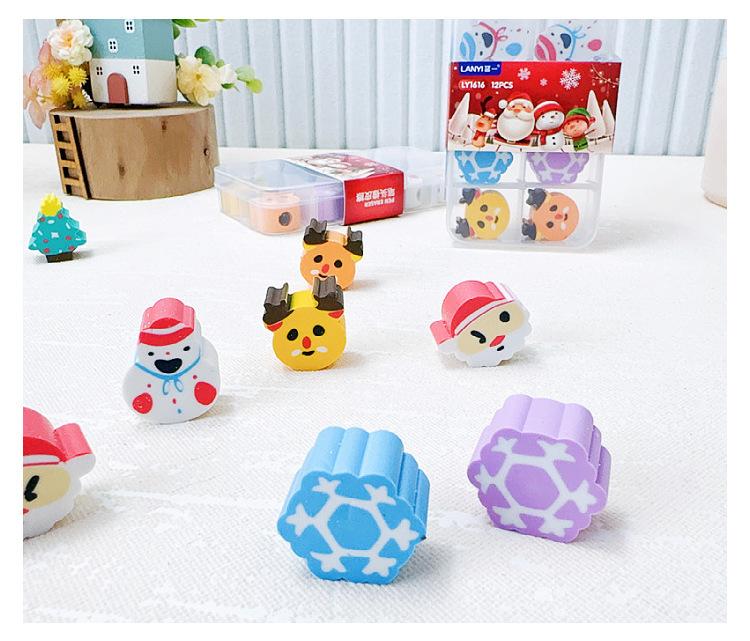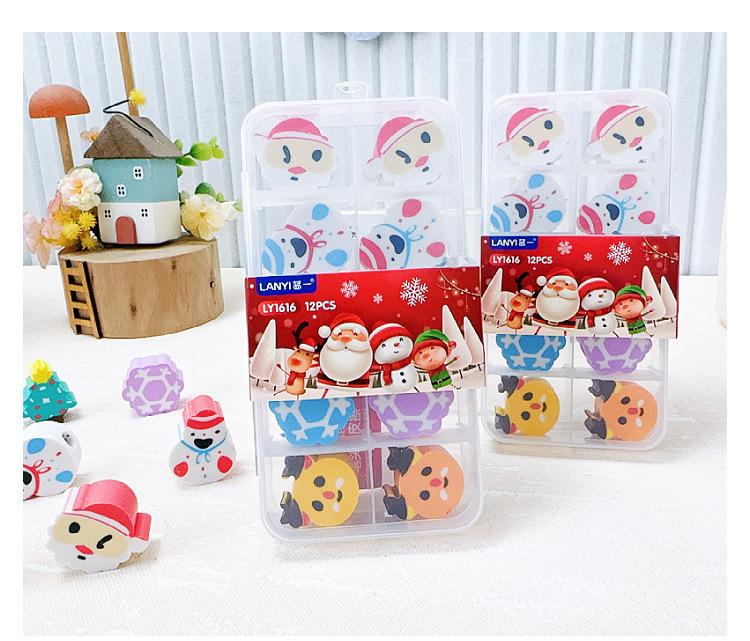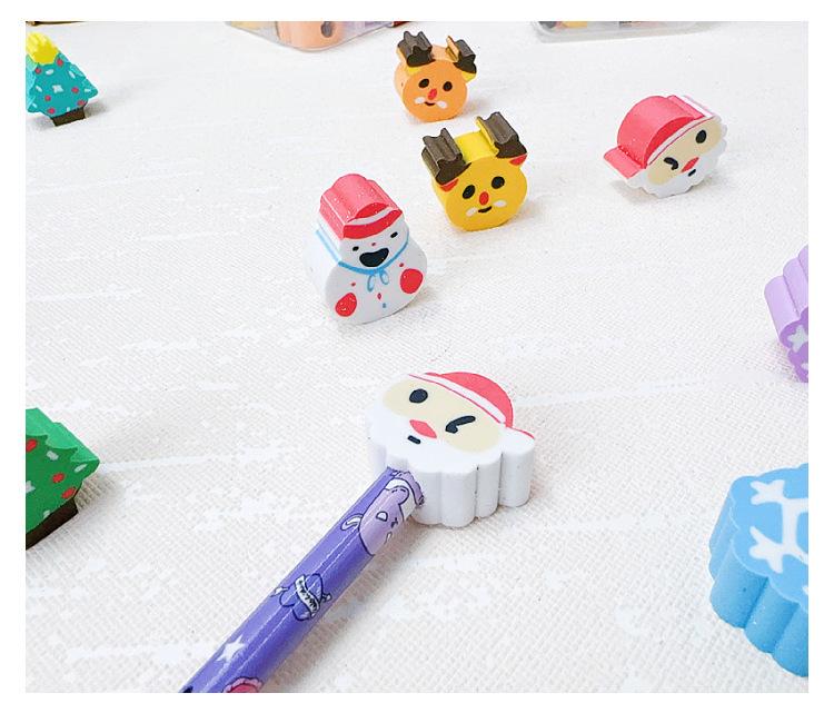 Bolígrafo navideño con forma divertida de dibujos animados, tapa de goma en caja de cuero, regalos para niños, premios, papelería, suministros de aprendizaje creativos