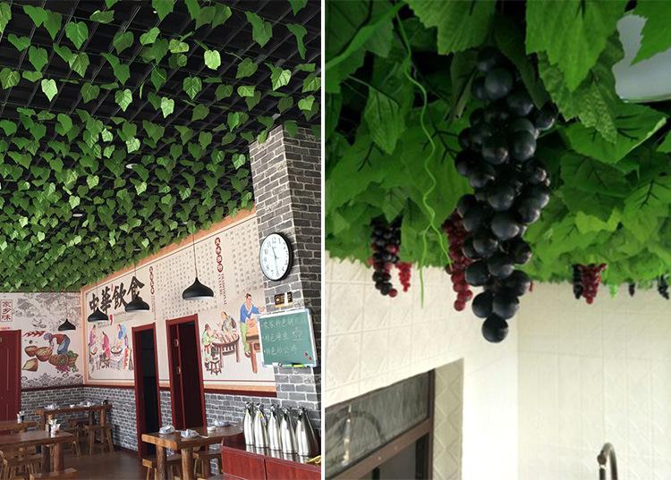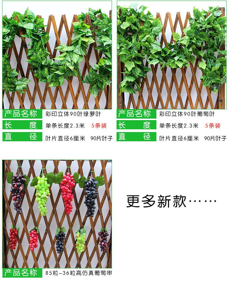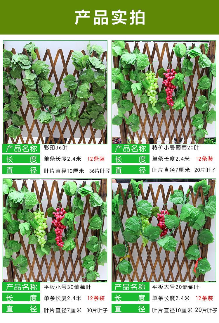 Venta al por mayor de vid de árbol, hoja de uva, pseudoflor, vid, hoja verde, hogar, techo, pared, bobinado, decoración interior, flor de plástico