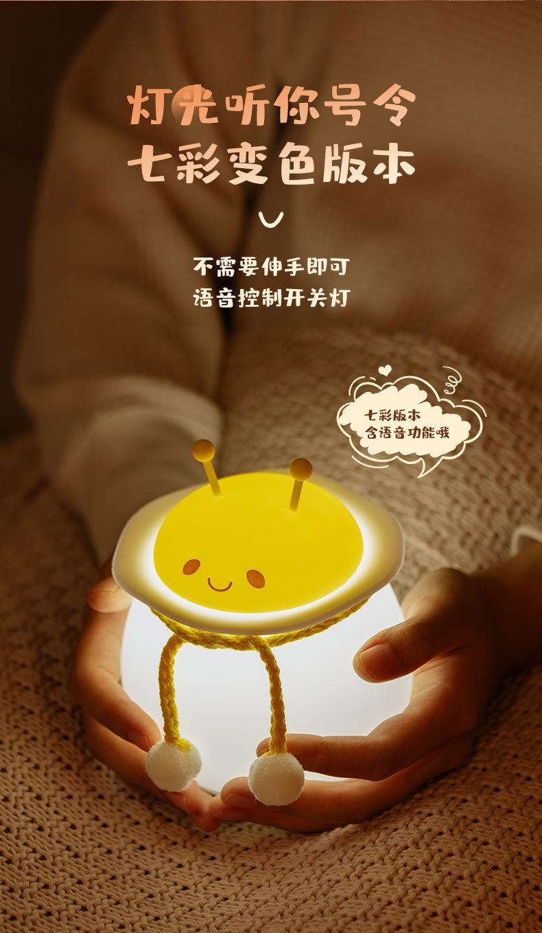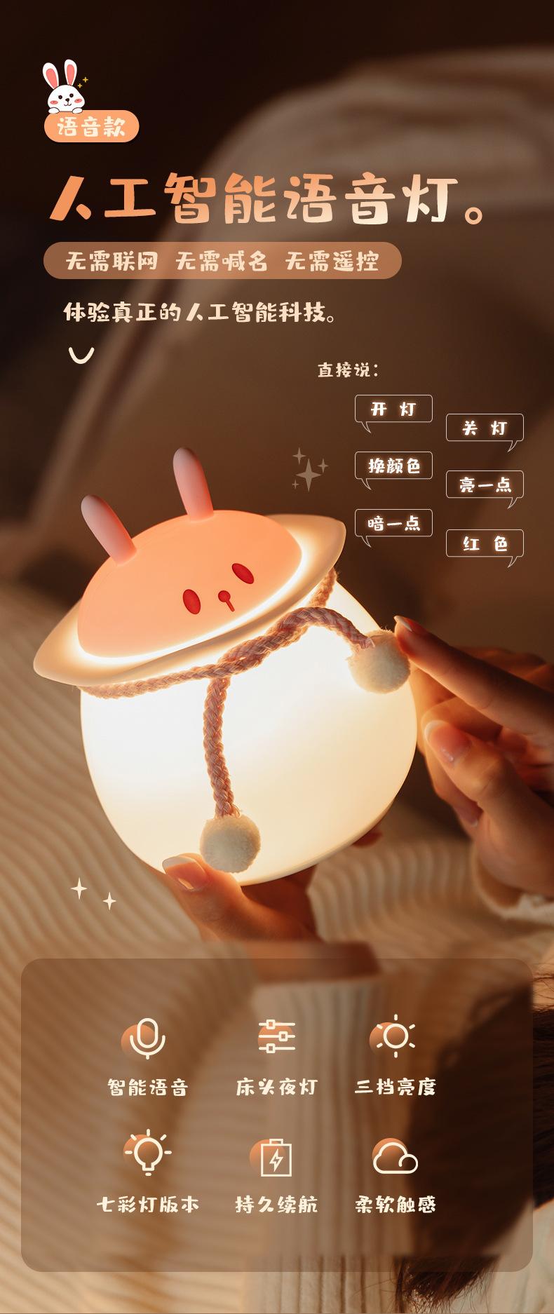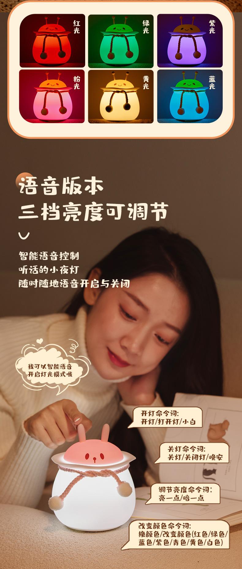 Luz nocturna de silicona con control de voz de fábrica e inteligencia artificial, luz nocturna creativa con carga para dormitorio