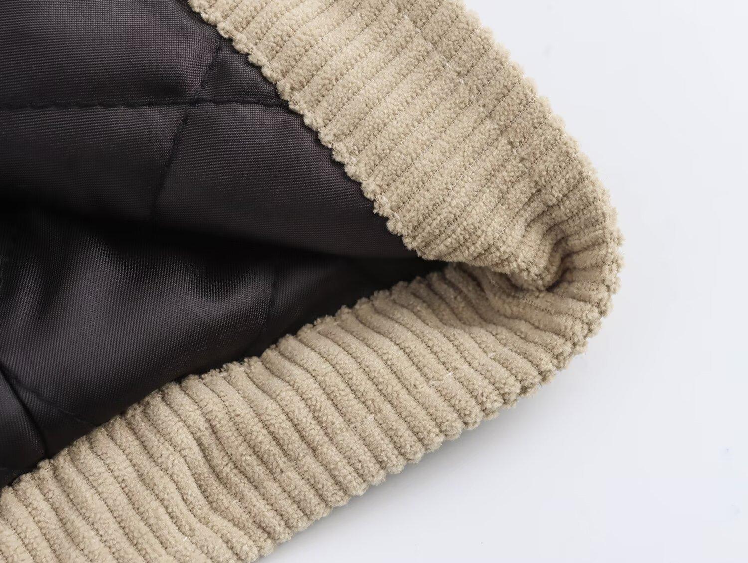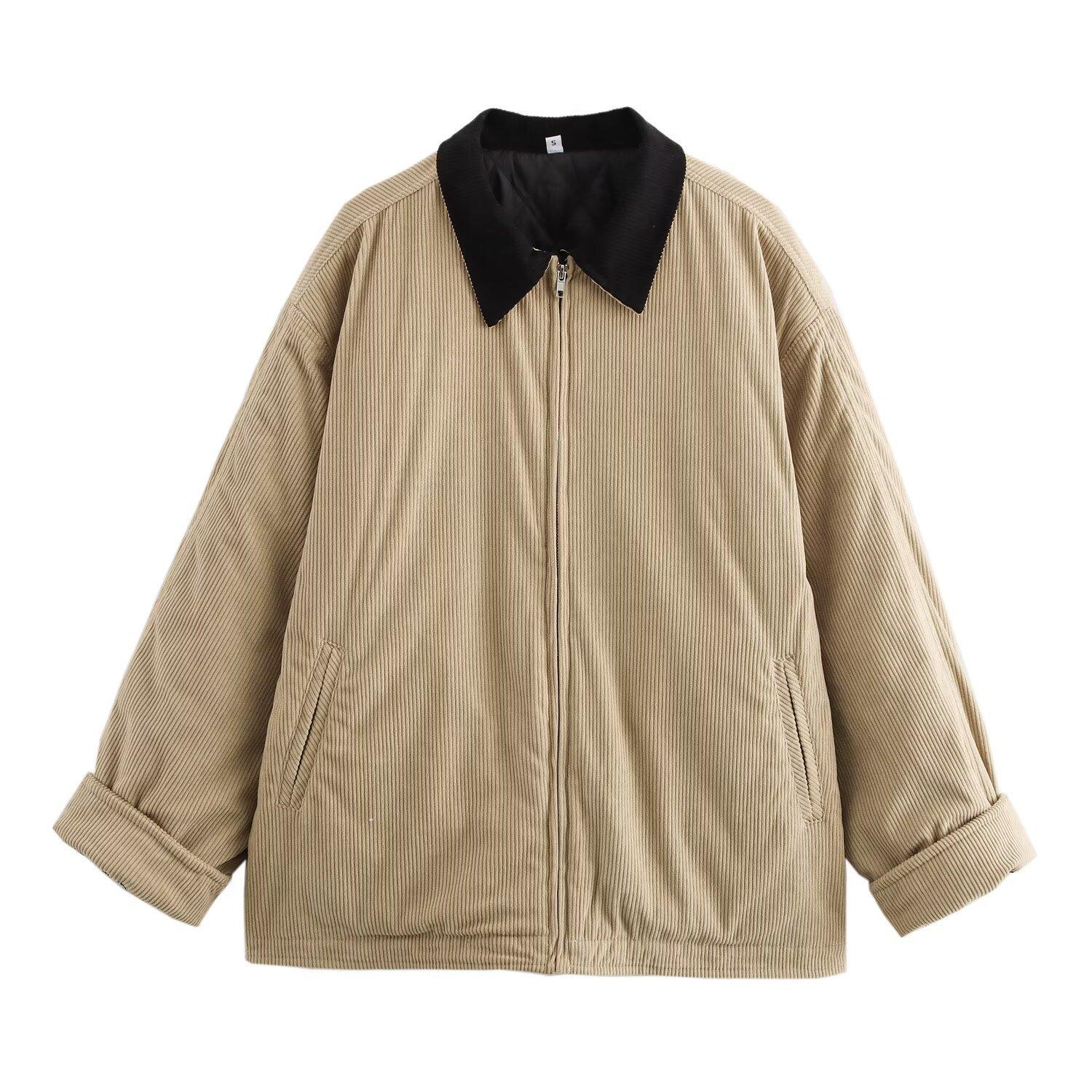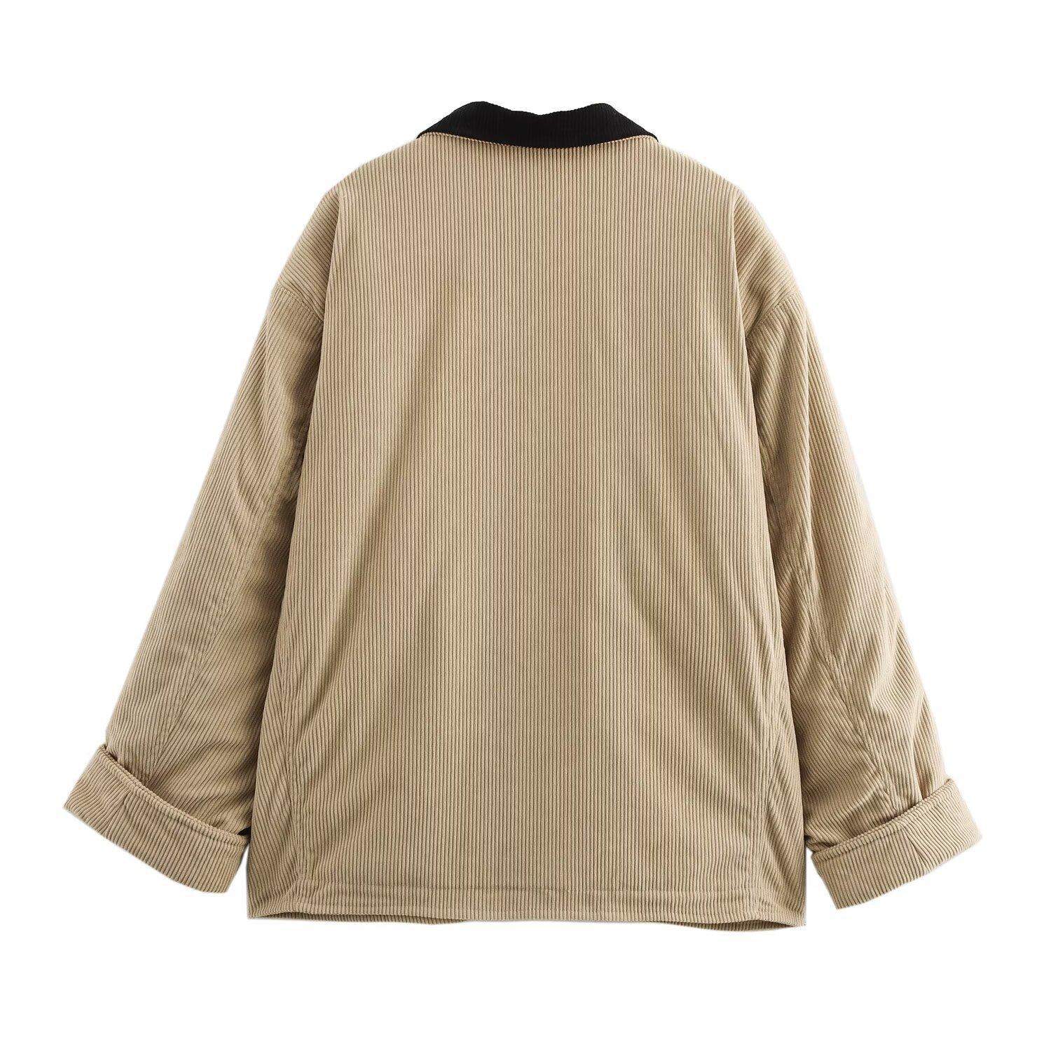 Chaqueta de Algodón para Mujer Estilo Europeo y Americano Otoño e Invierno Cáqui Cálida Pana Contraste
