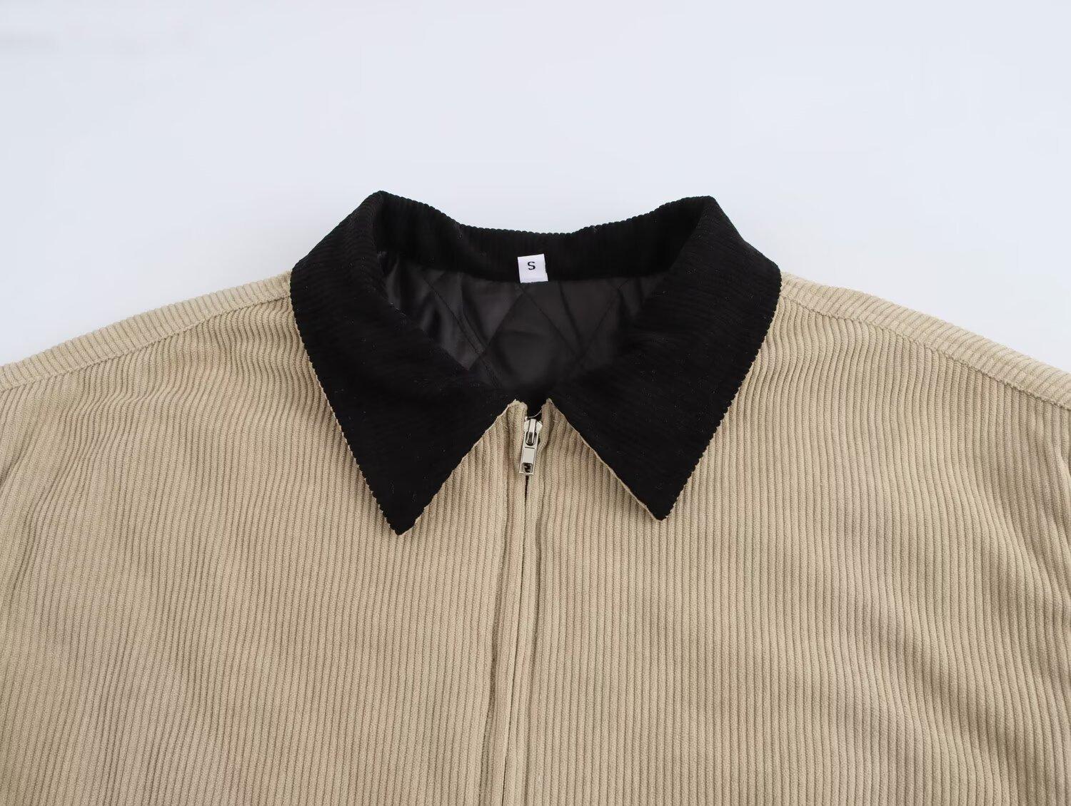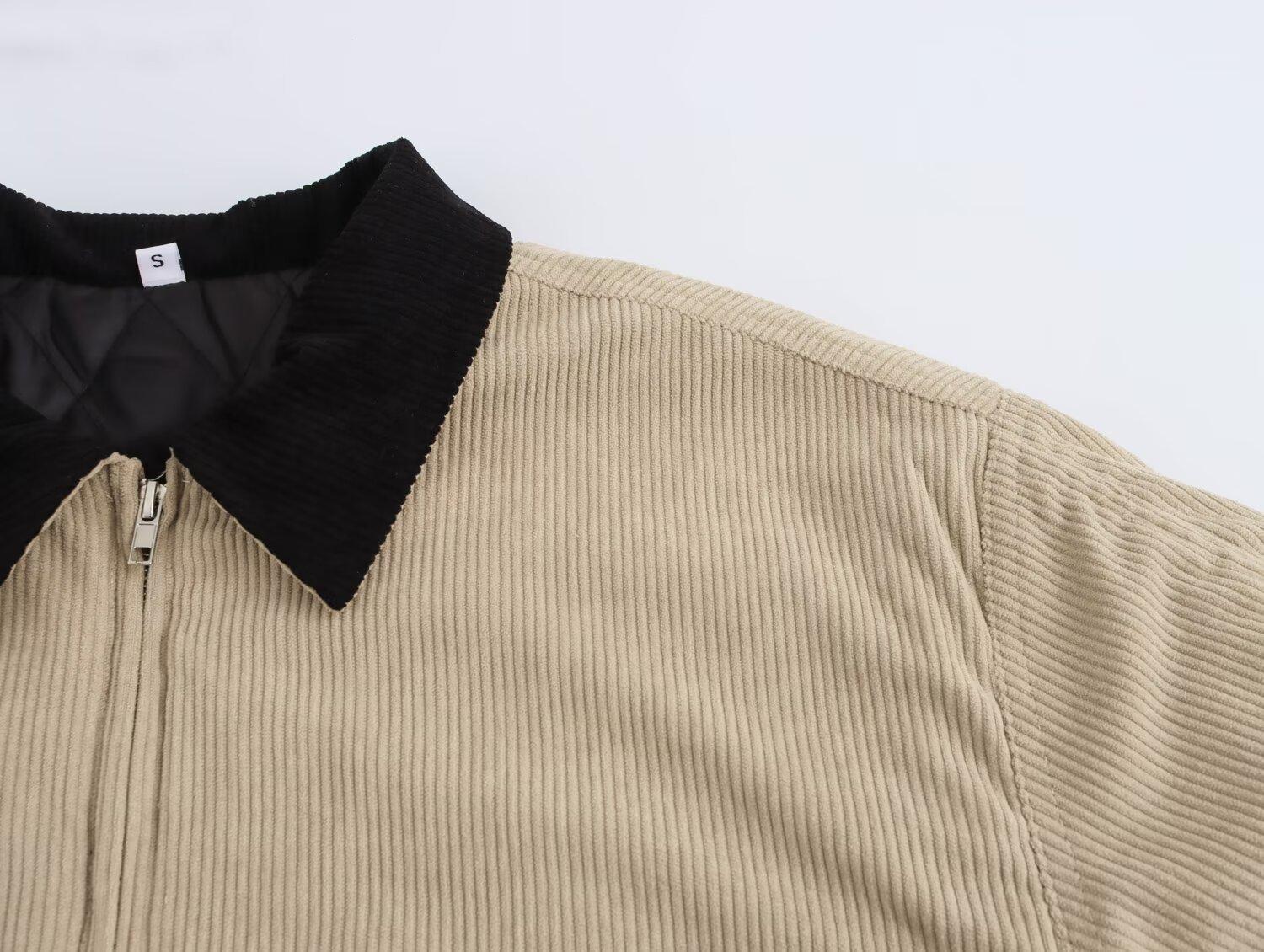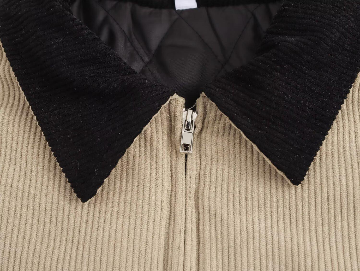 Chaqueta de Algodón para Mujer Estilo Europeo y Americano Otoño e Invierno Cáqui Cálida Pana Contraste