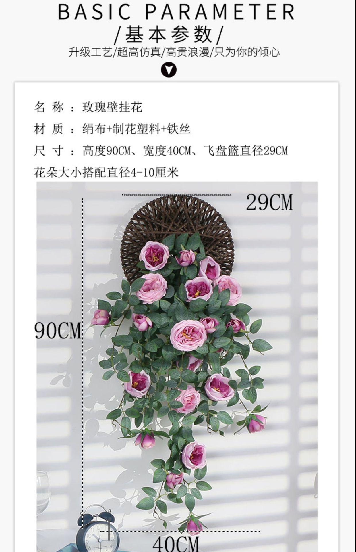 Decoración de flores colgantes, planta de plástico para colgar en la pared, flor artificial para colgar en la pared, orquídea, cesta colgante, enredadera, flor para colgar en la pared, enredadera, rosa