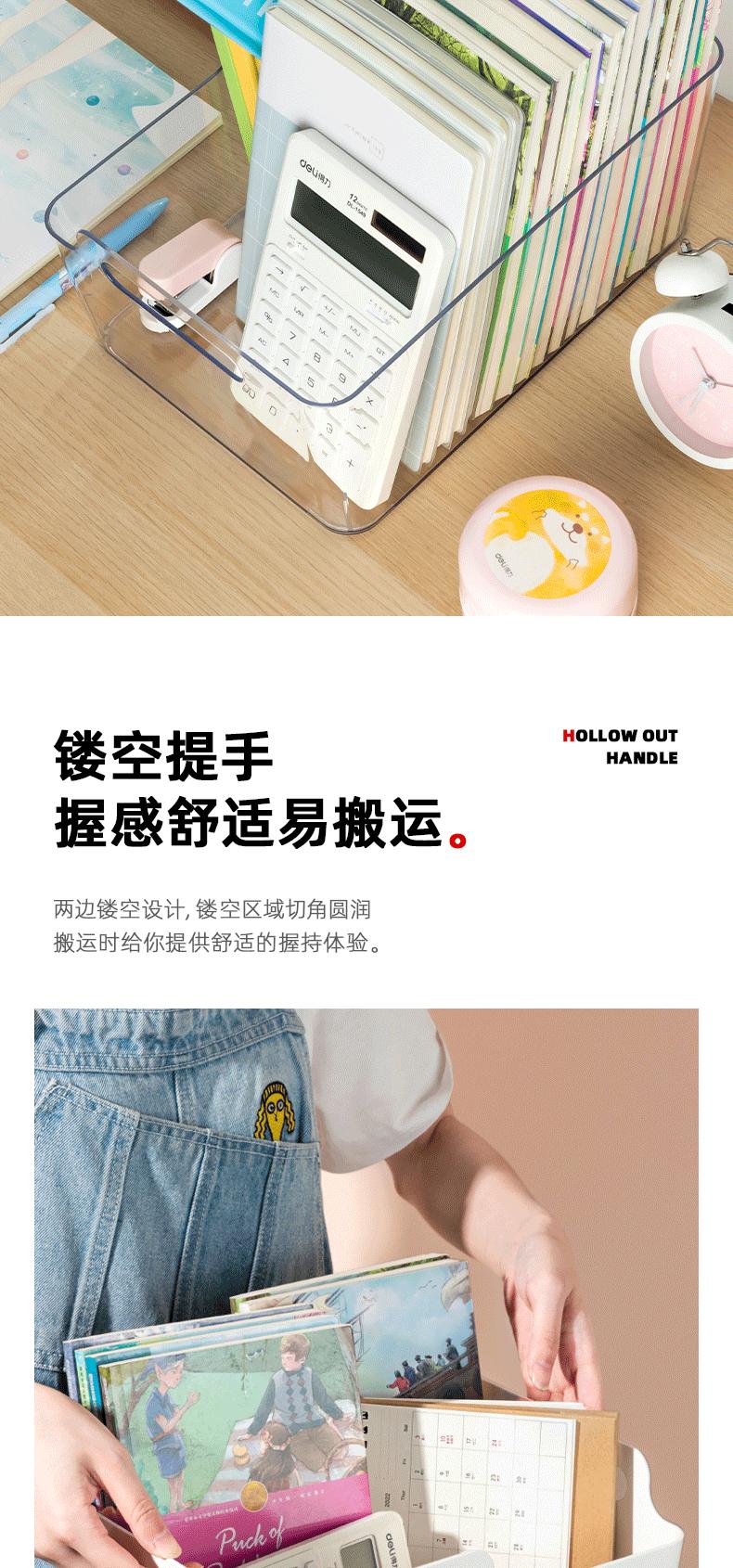 Caja de almacenamiento para libros Deli blanco arroz clasificación multi-especificación clasificación de escritorio cesta de archivos transparente almacenamiento de artículos diversos