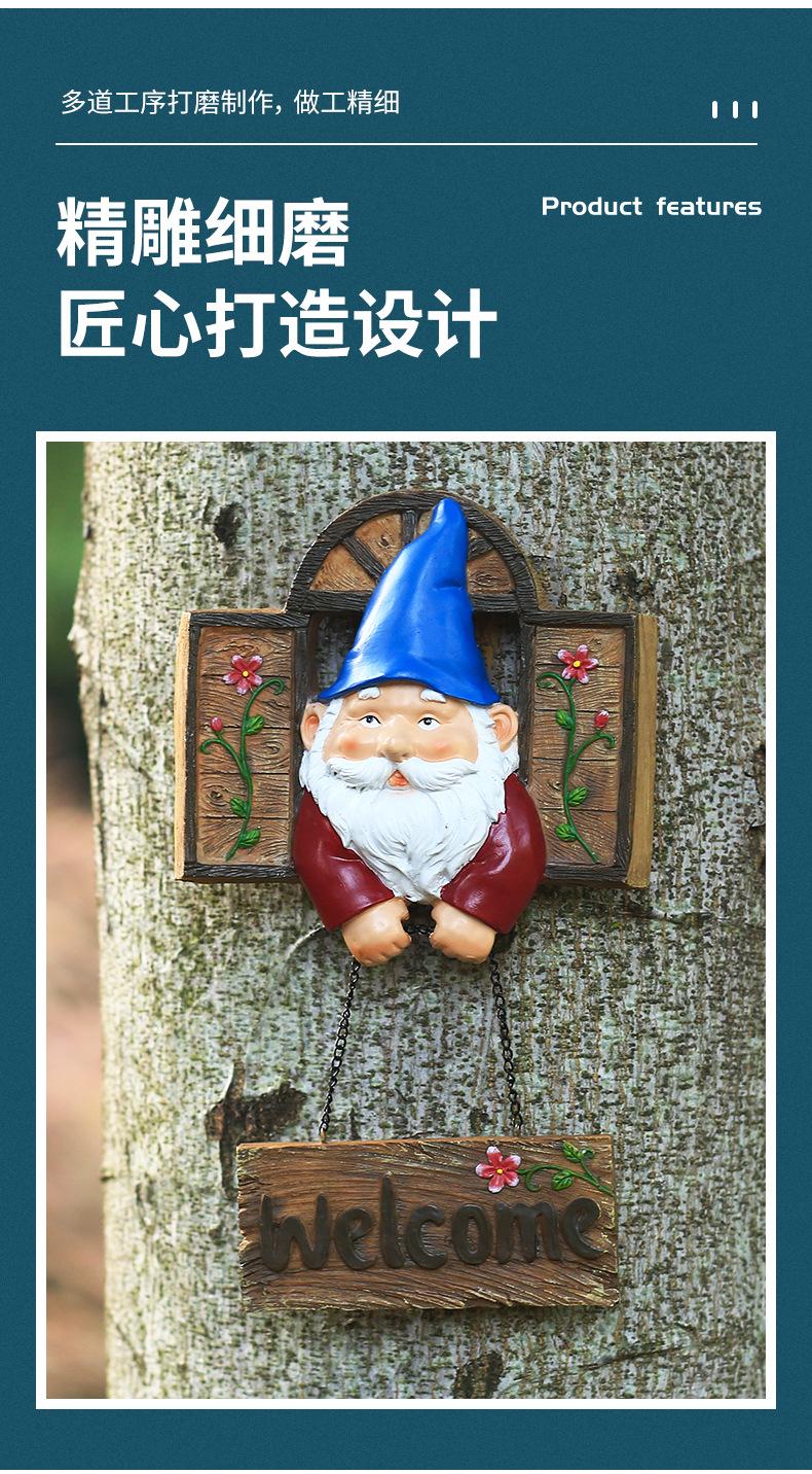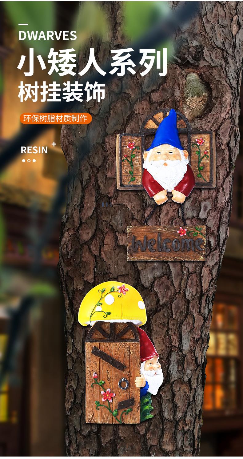 Adornos de Jardín de Patio Enanos Decorativos Abertura de Puerta de Elfo Colgante de Árbol Paisajismo de Pared Artesanías de Resina
