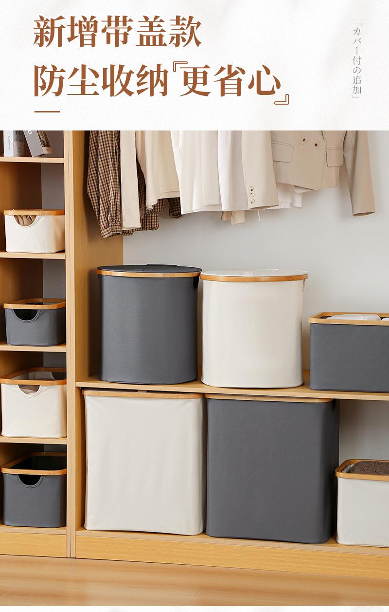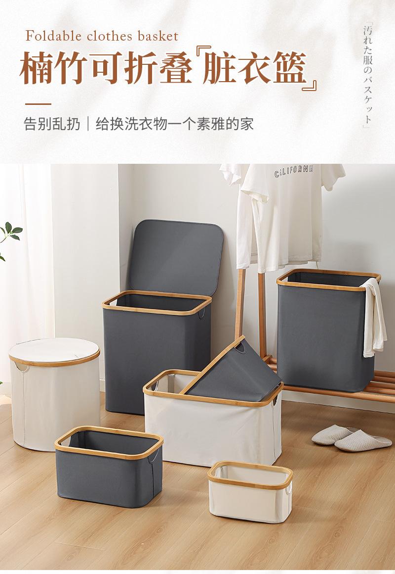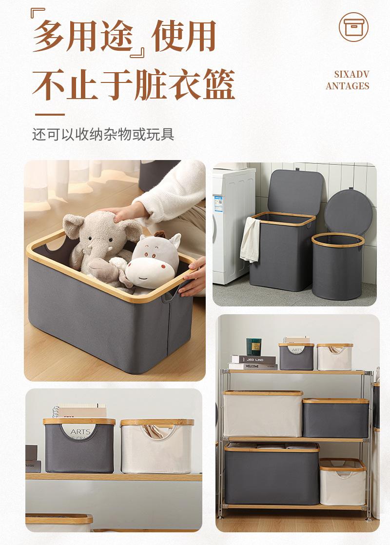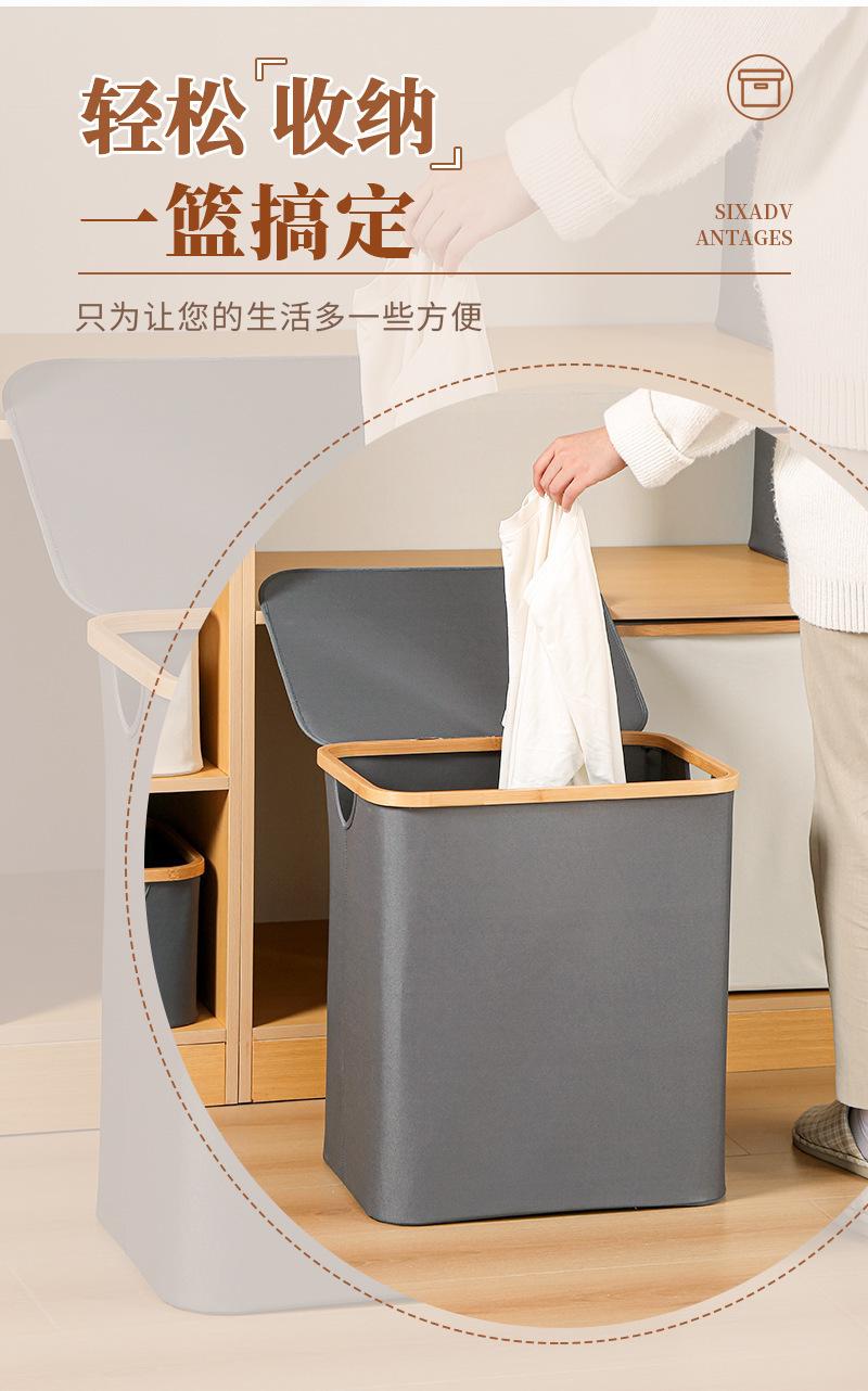 Cesta de lavandería de gran tamaño con tapa, cesta de almacenamiento con asa de bambú, cesta de ropa plegable para dormitorio, ropa familiar, juguetes