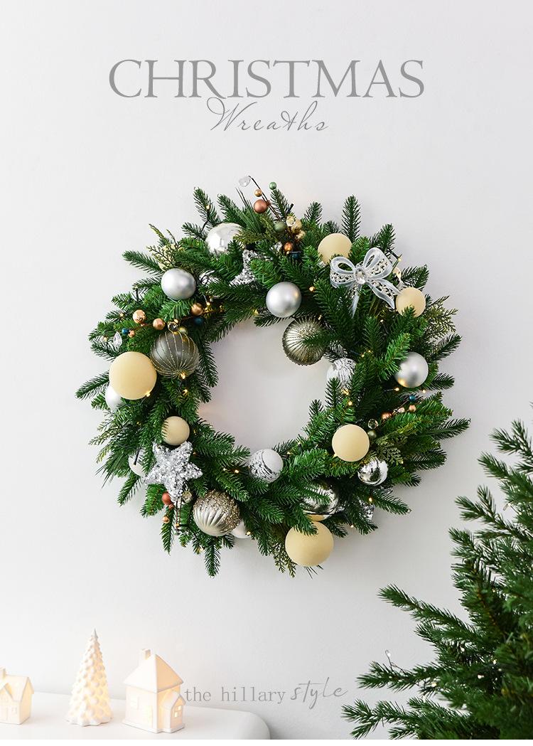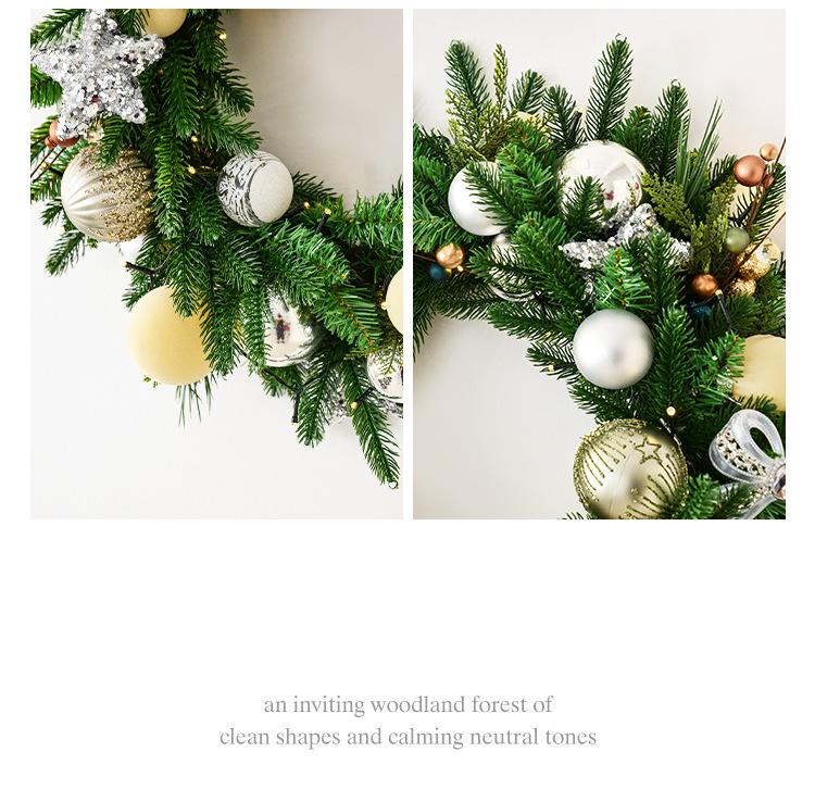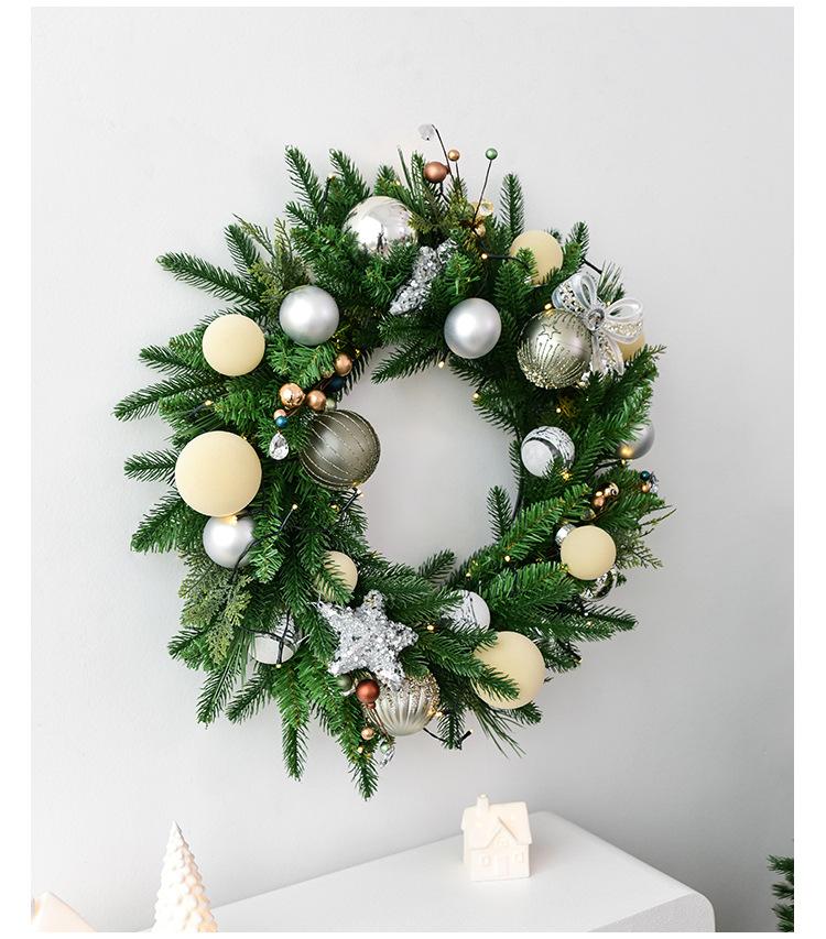 Decoración Navideña Transfronteriza Nuchi 60cm Corona Navideña de Hoja de Pino y Ciprés de Imitación Decoración para Puerta Adornos Colgantes de Navidad