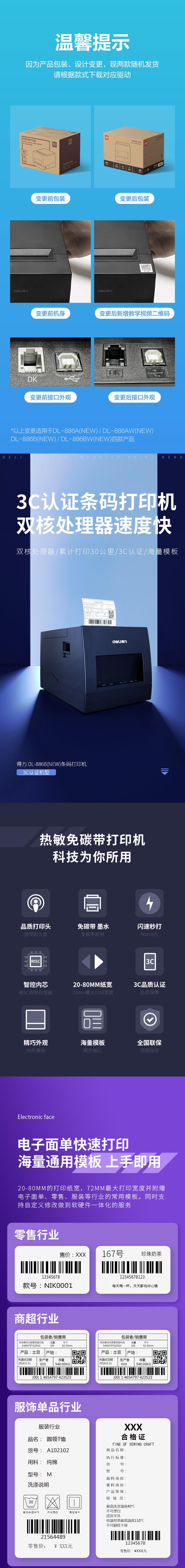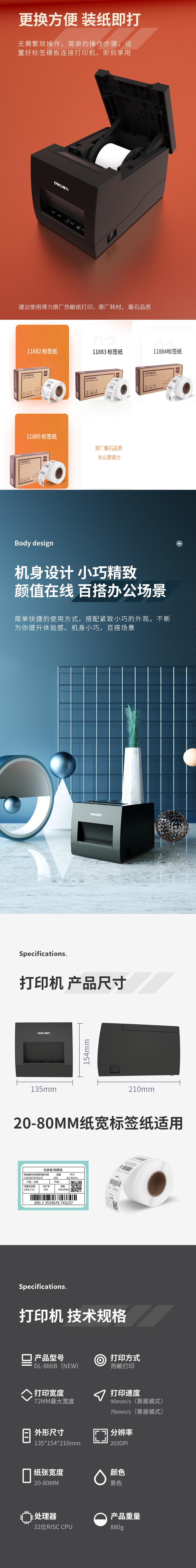 Charcutería DL-886B(NUEVO) Impresora térmica de etiquetas, impresora de códigos de barras, impresión exprés de hojas de 72 mm