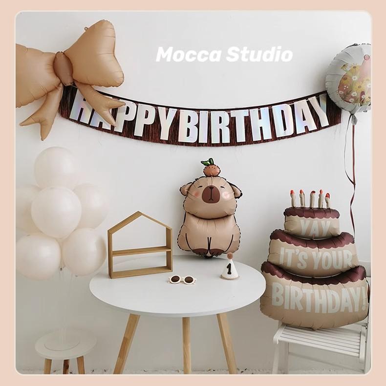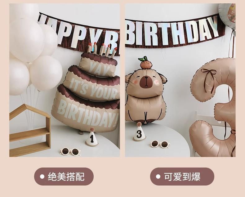 Compra Lindo arreglo de cumpleaños Kabibala explosivo, decoración de escena, borla marrón, bandera, lazo, globo, número 3 al por mayor en Joom.pro