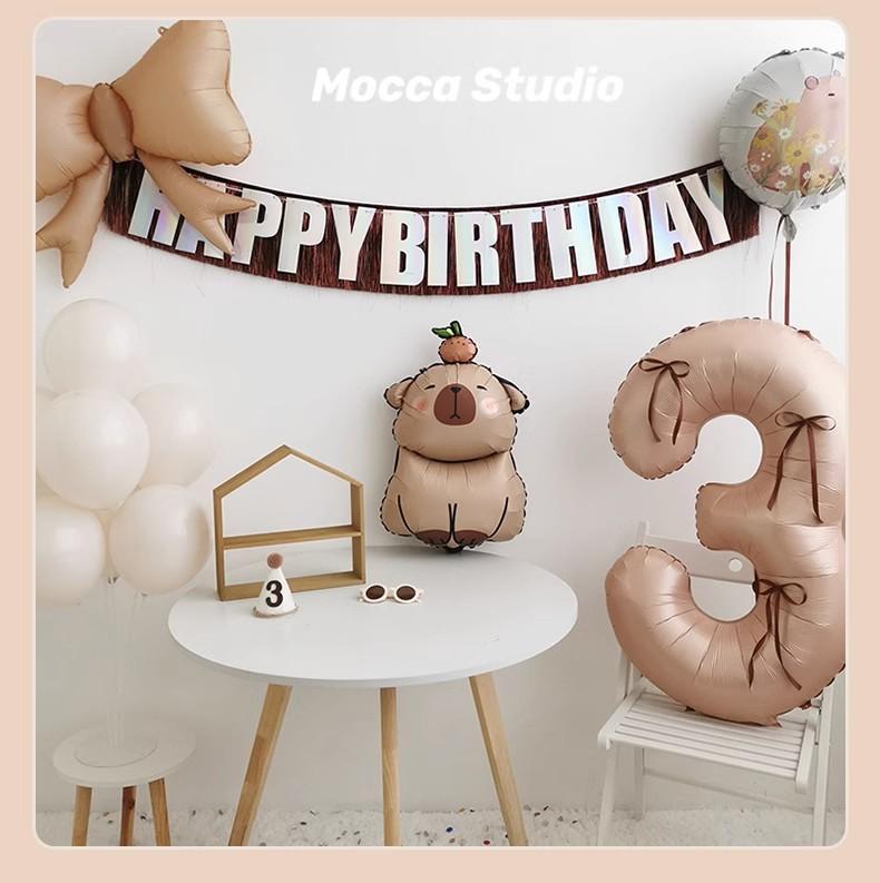 Lindo arreglo de cumpleaños Kabibala explosivo, decoración de escena, borla marrón, bandera, lazo, globo, número 3