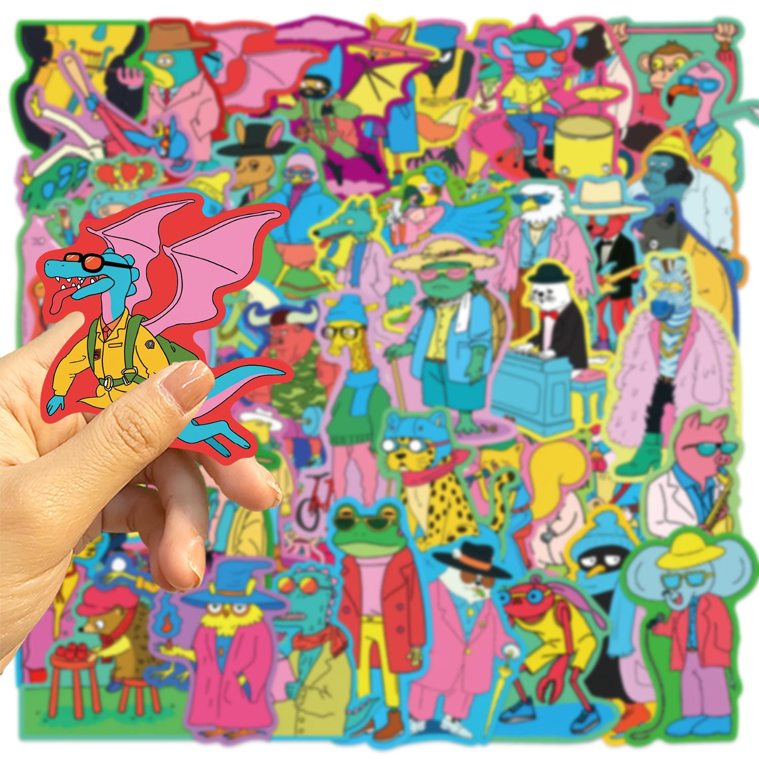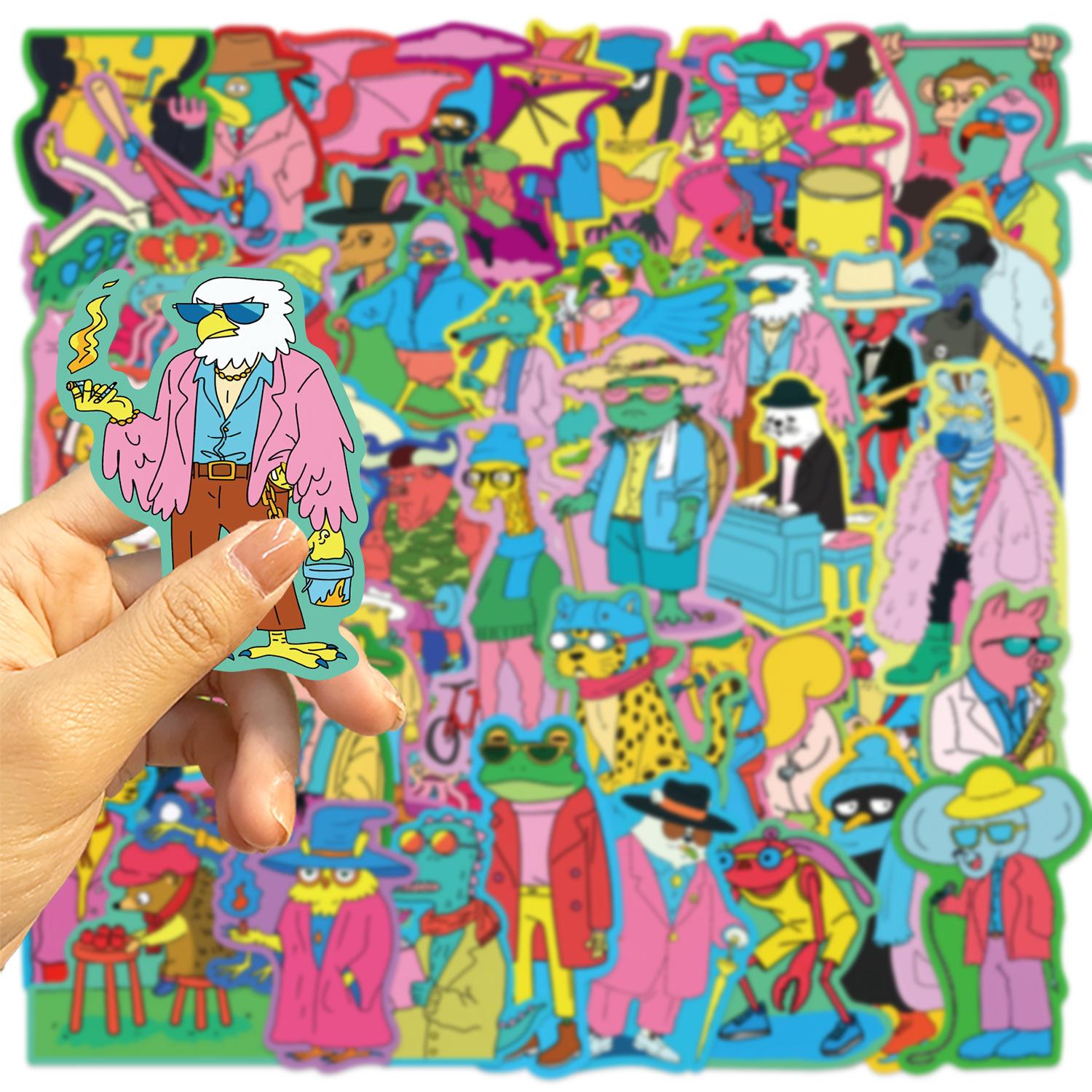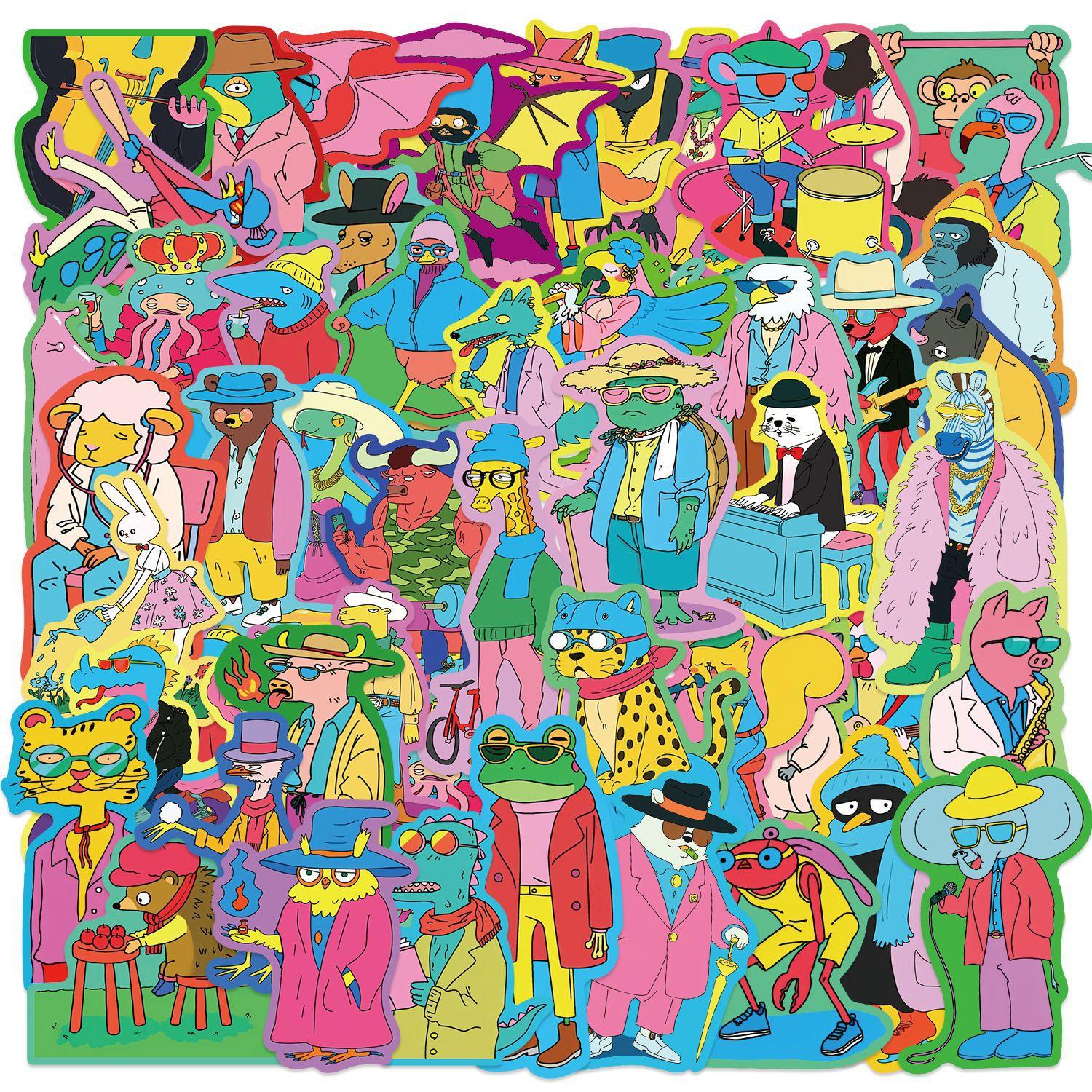 50 pegatinas de animales con dibujos animados de grafiti en color, personalizadas, decorativas, para equipaje, bolígrafo, guitarra, cuaderno, pegatinas impermeables.