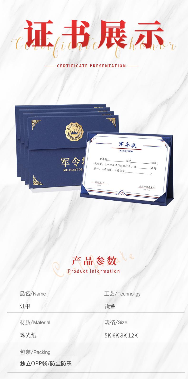 Carta de pedido militar doble plegada a la mitad, carta de responsabilidad objetivo, carta de responsabilidad, carta de desafío de compromiso de desempeño, impresión bronceada personalizada ww