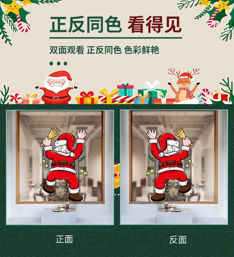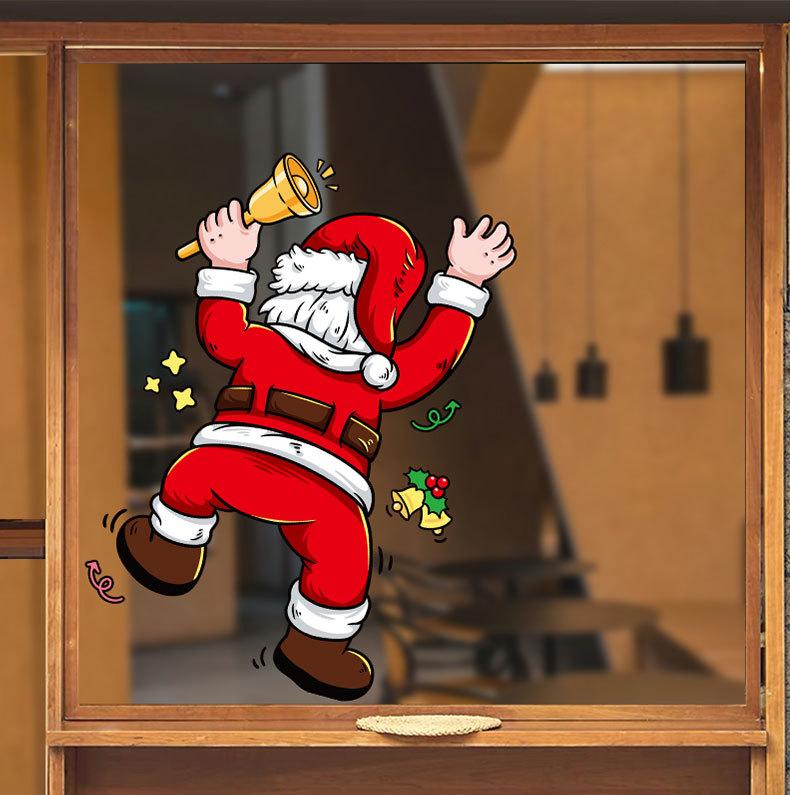 Nuevas decoraciones navideñas grandes de Papá Noel, pegatinas creativas con diseño de escena de ventana de vidrio de centro comercial