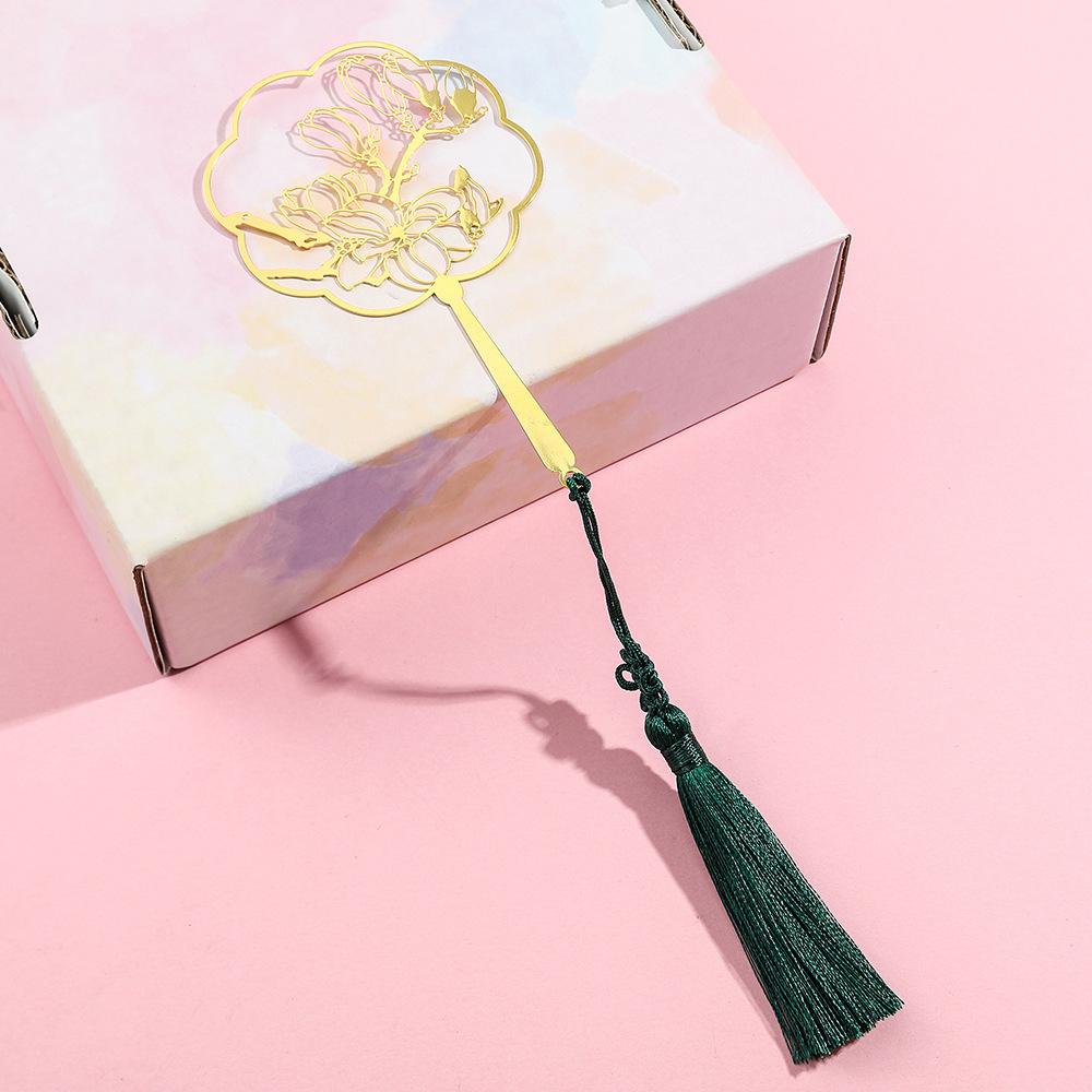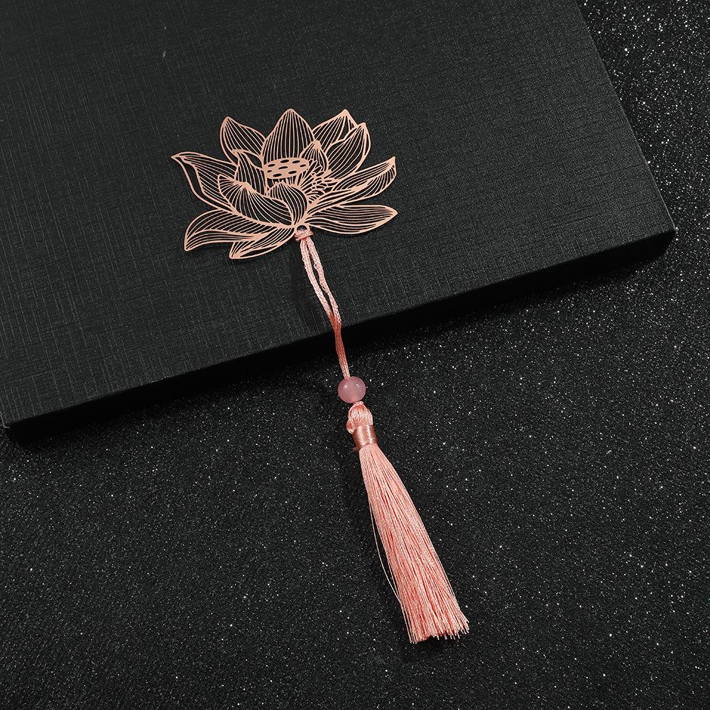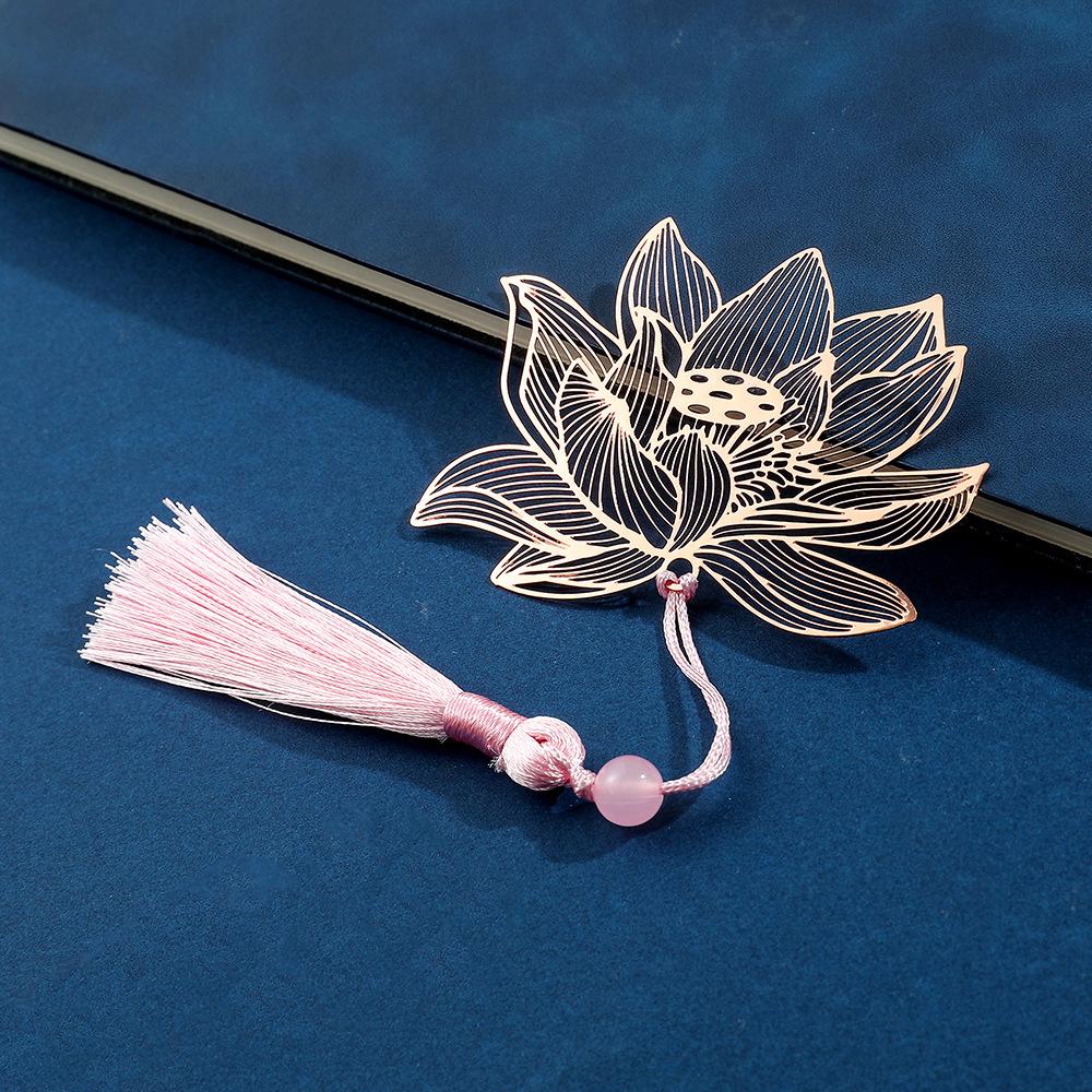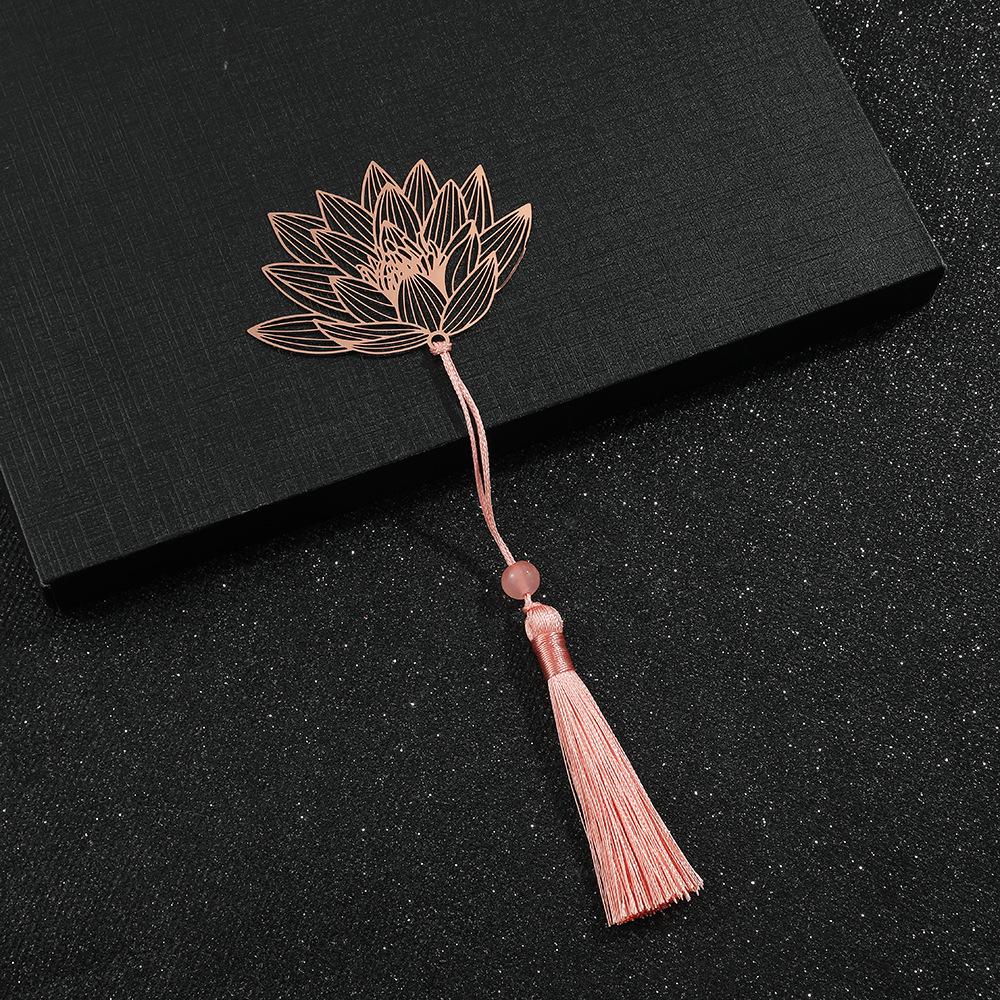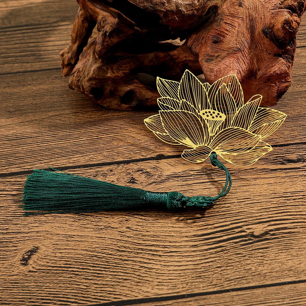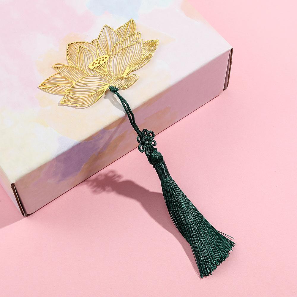 Marcapáginas hueco de estilo antiguo con veta de latón y metal, creativo, estilo clásico de loto, exquisito regalo para el Día del Maestro, caja de regalo, traje