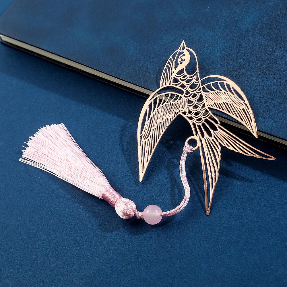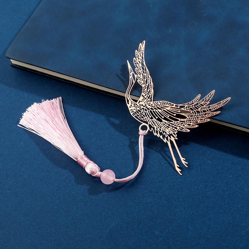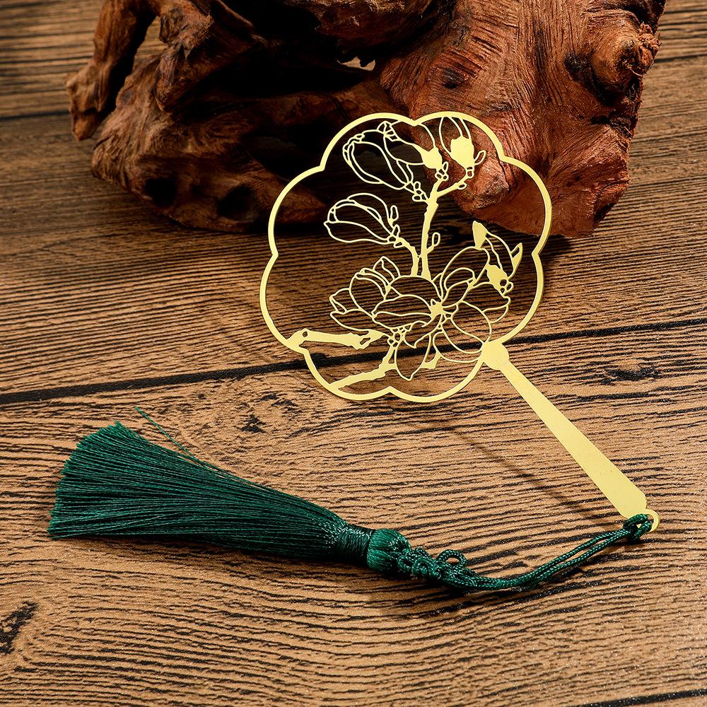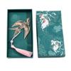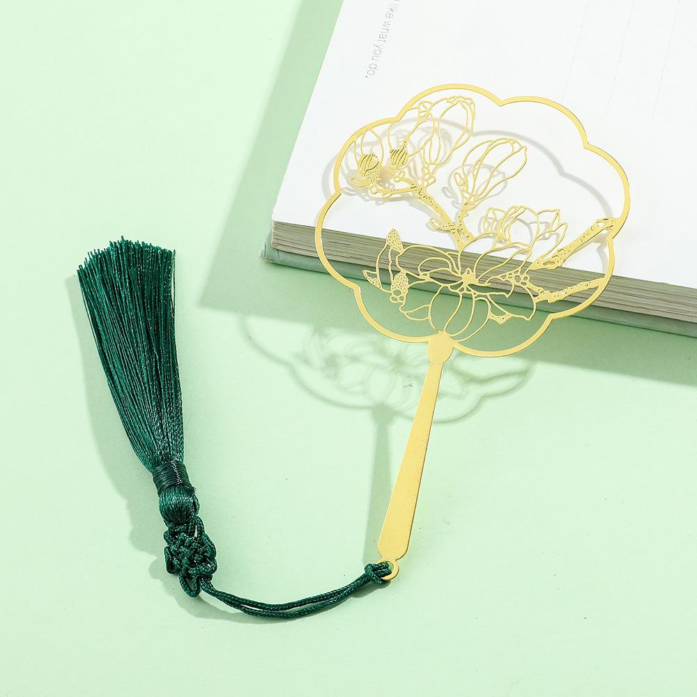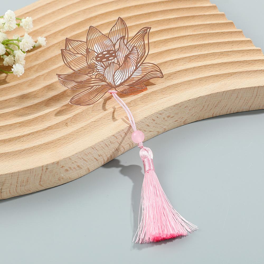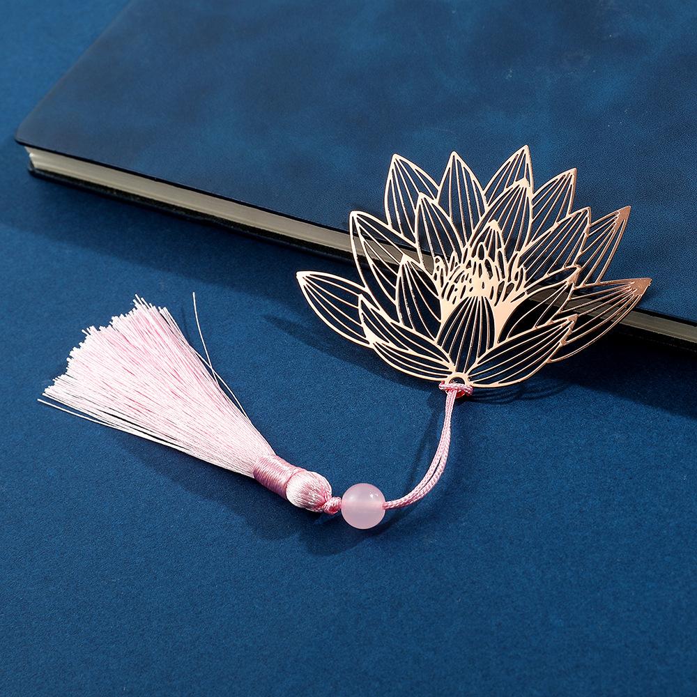 Marcapáginas hueco de estilo antiguo con veta de latón y metal, creativo, estilo clásico de loto, exquisito regalo para el Día del Maestro, caja de regalo, traje