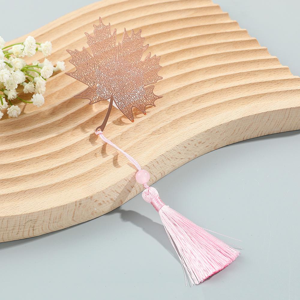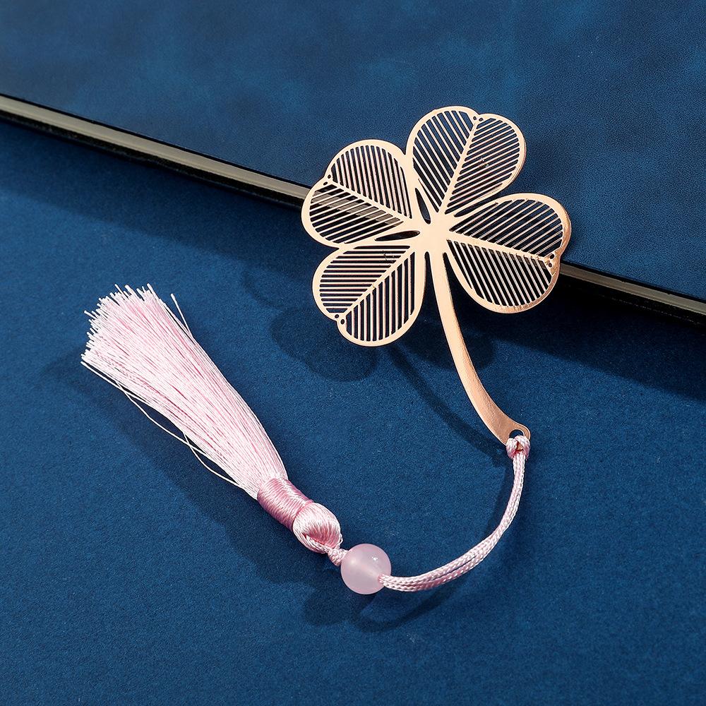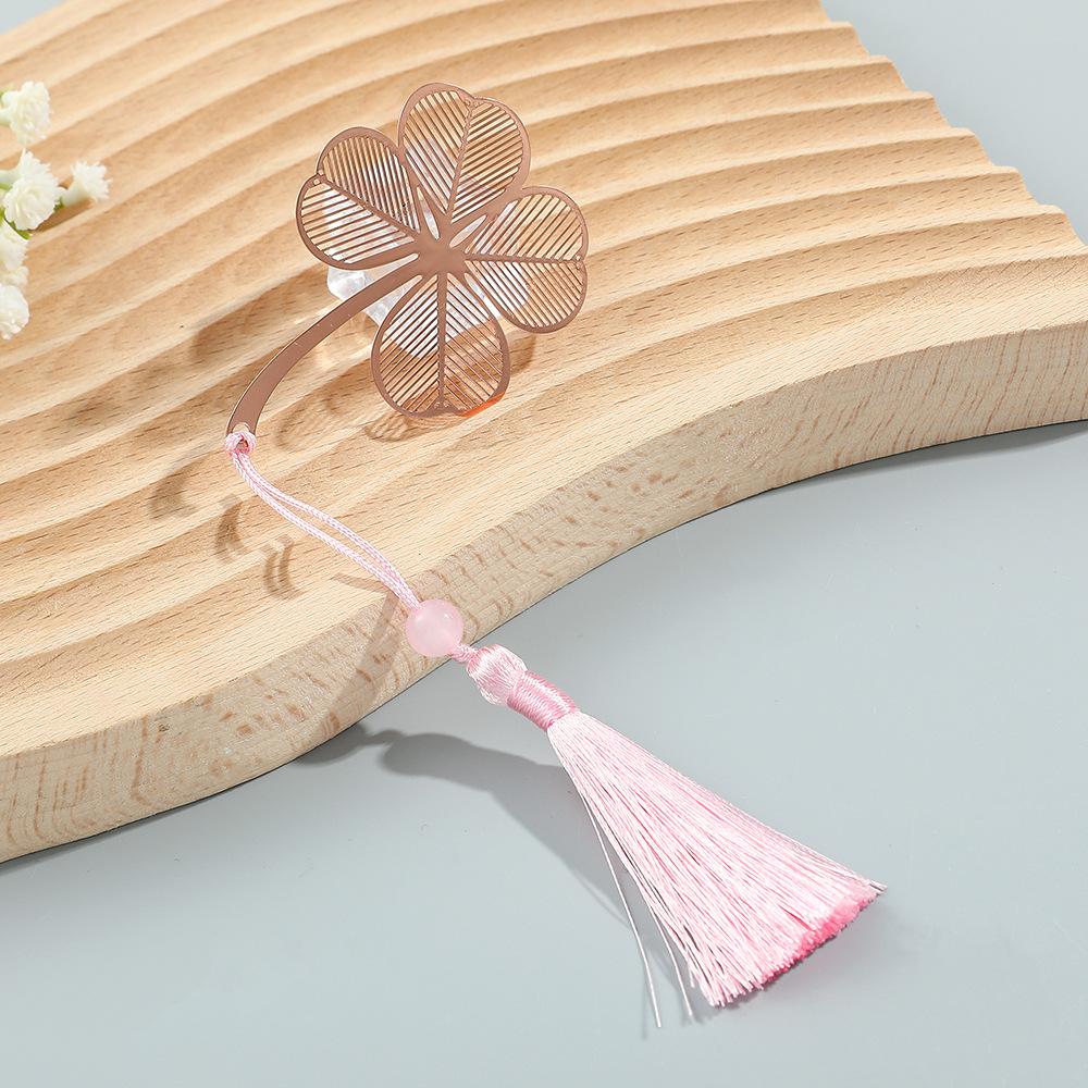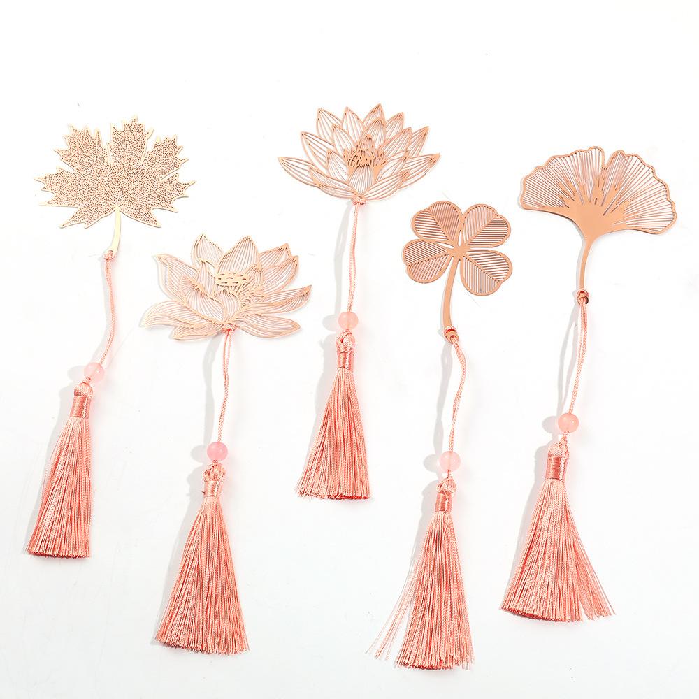 Pink sycamore leaf single bookmark, Pink lotus single bookmark, Pink lotus single bookmark, Pink four-leaf clo...