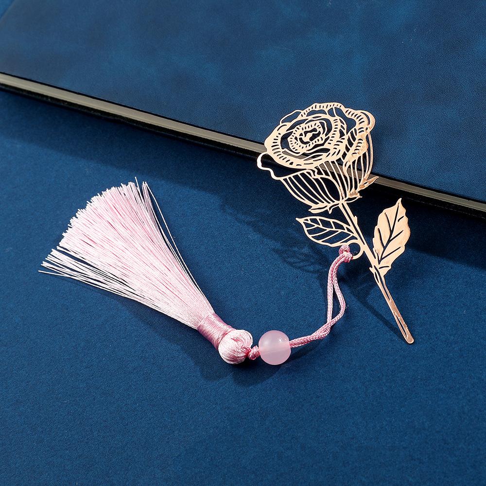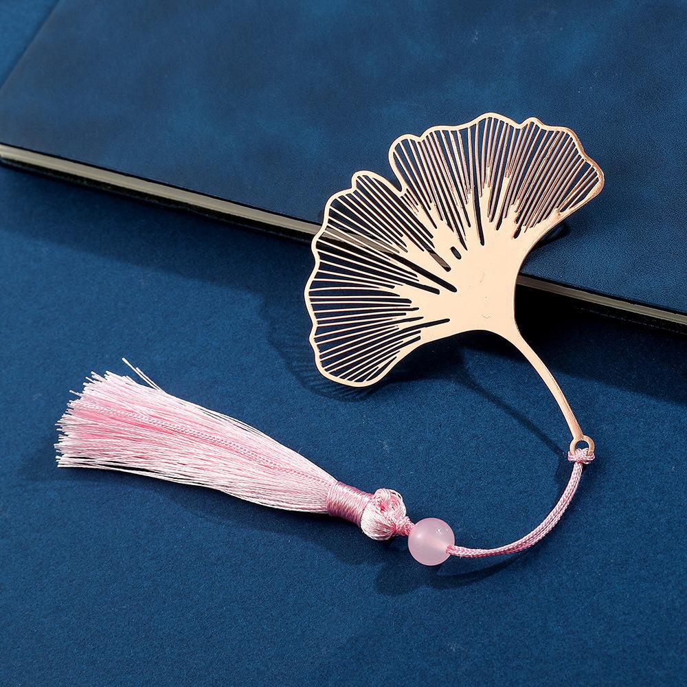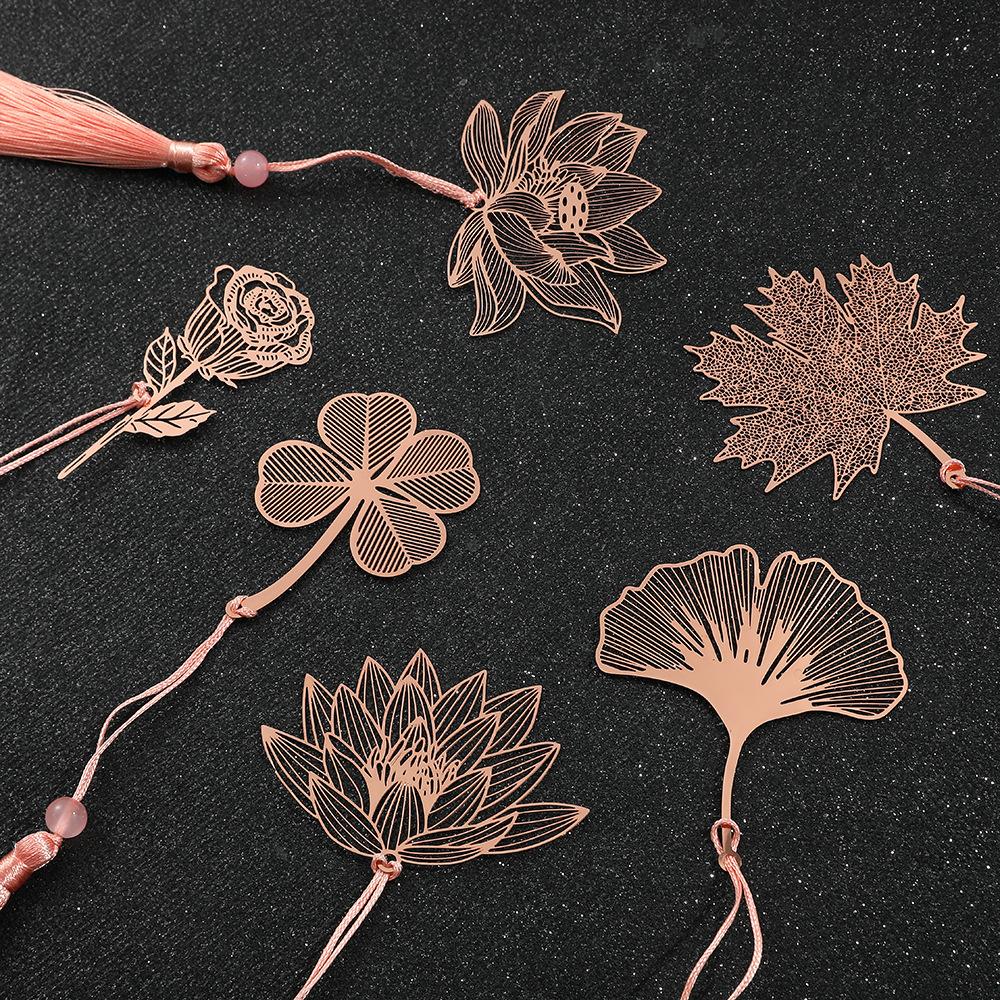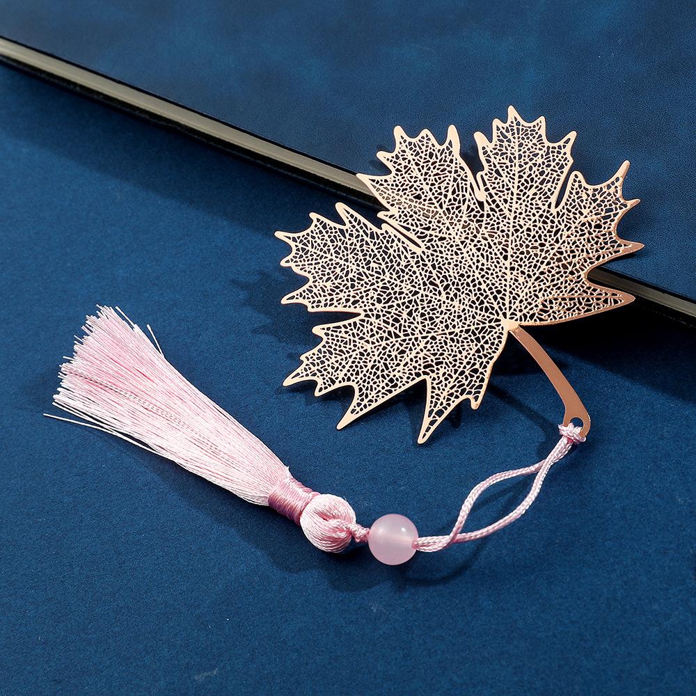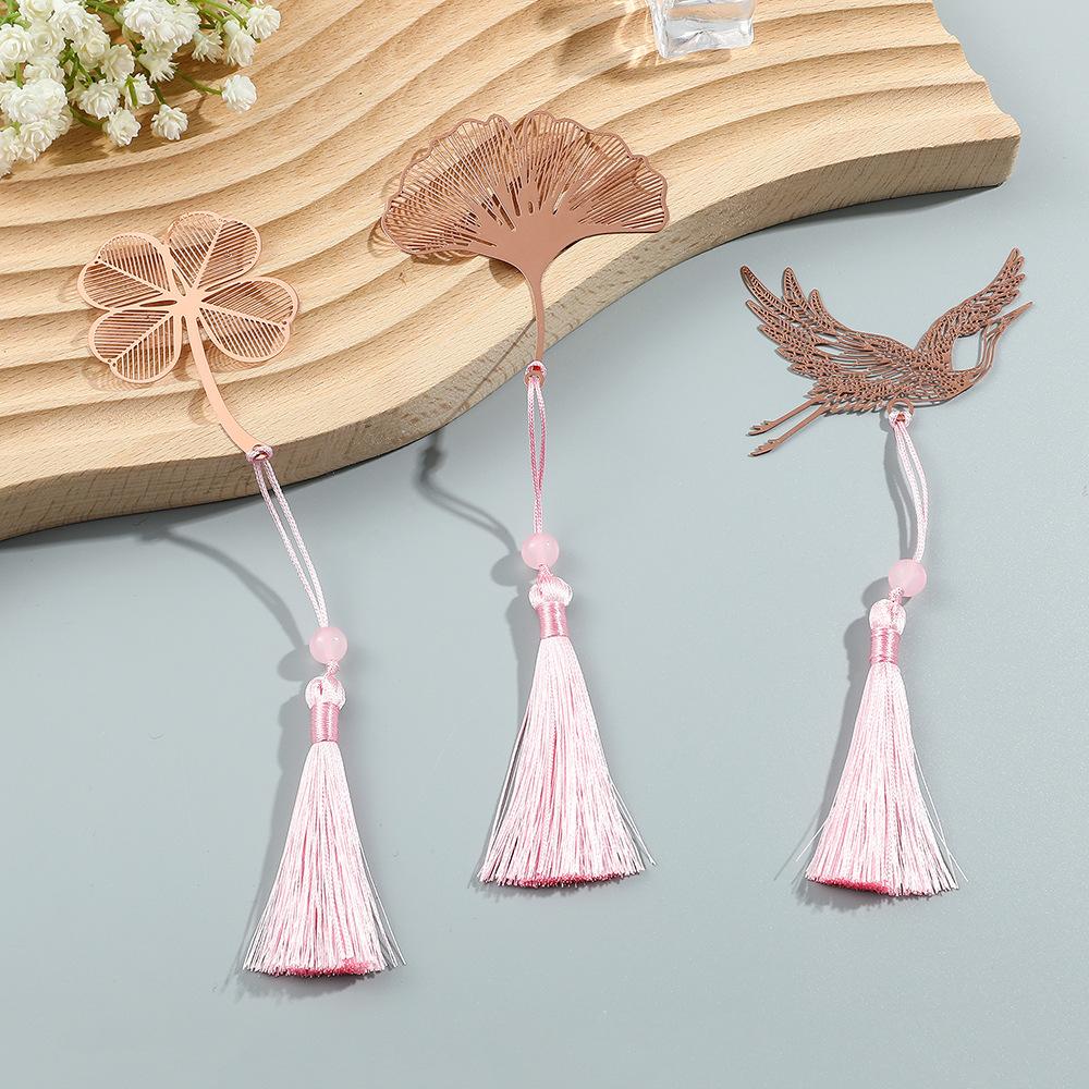 Pink sycamore leaf single bookmark, Pink lotus single bookmark, Pink lotus single bookmark, Pink four-leaf clo...