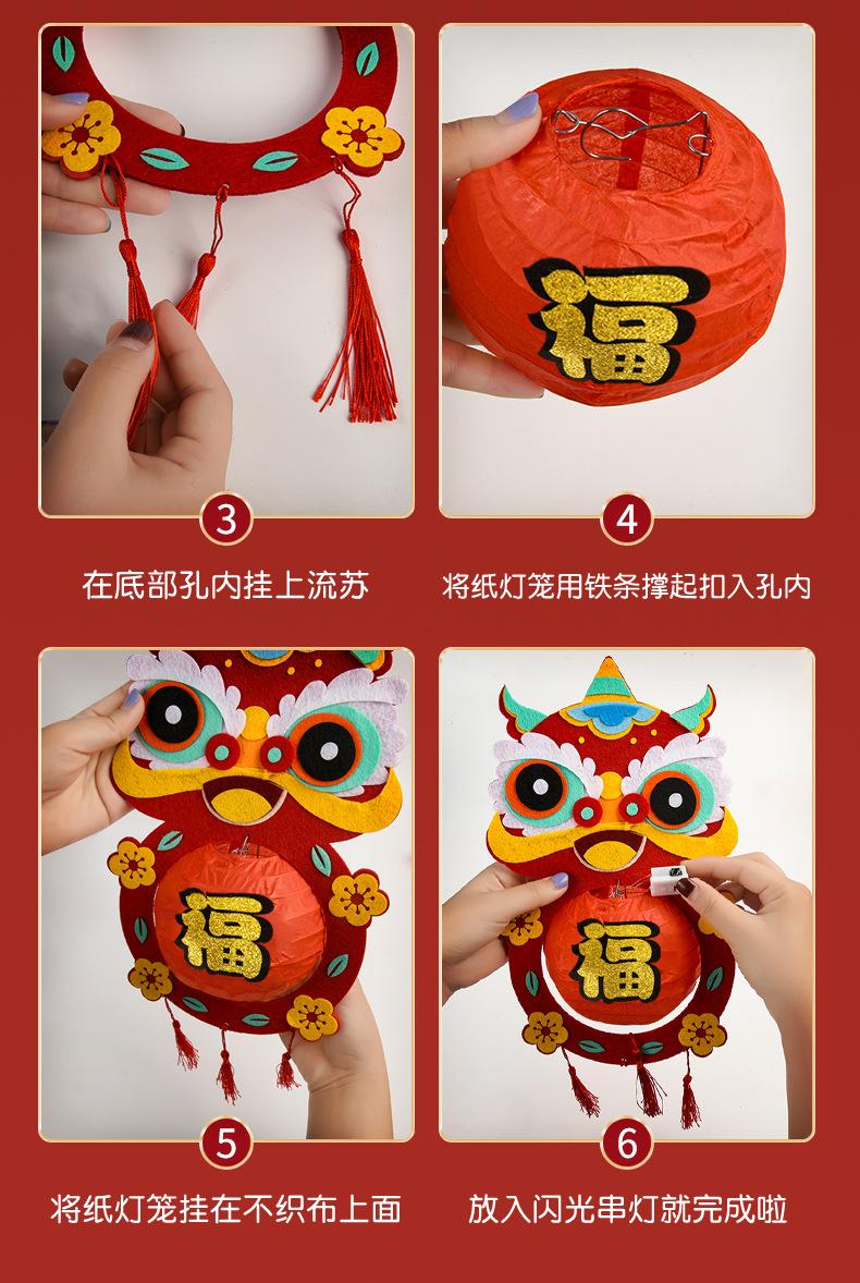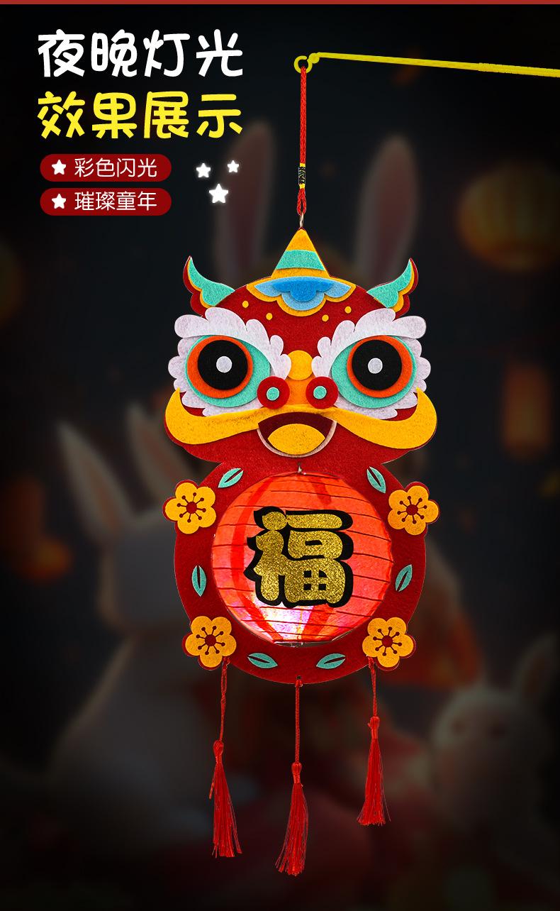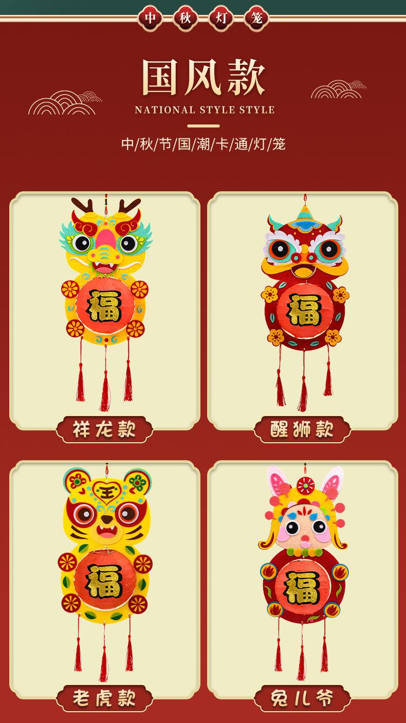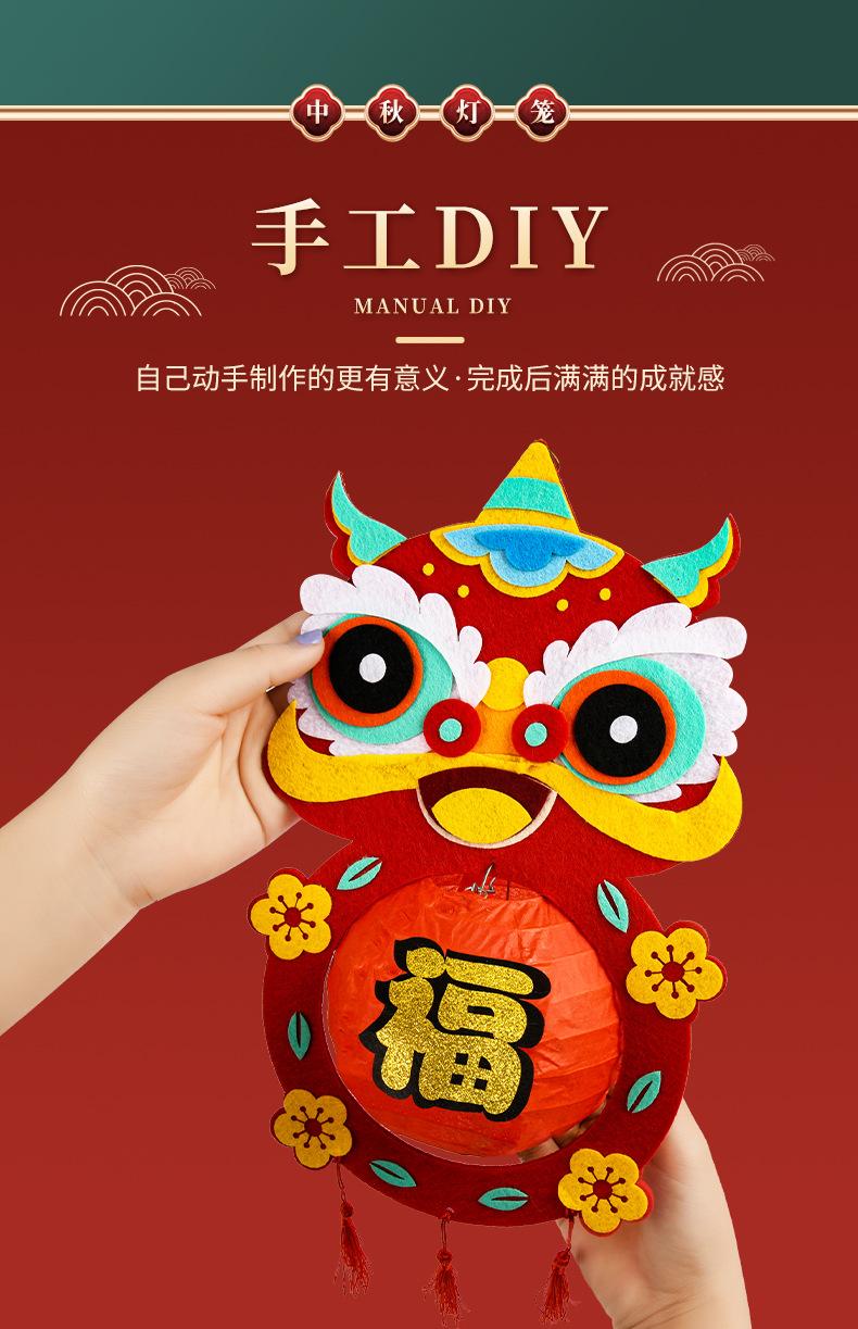 Festival del Medio Otoño Linterna Pequeña Hecha a Mano DIY Portátil para Niños Danza del León Linterna Roja Linterna Creativa Linterna de Dibujos Animados Portátil