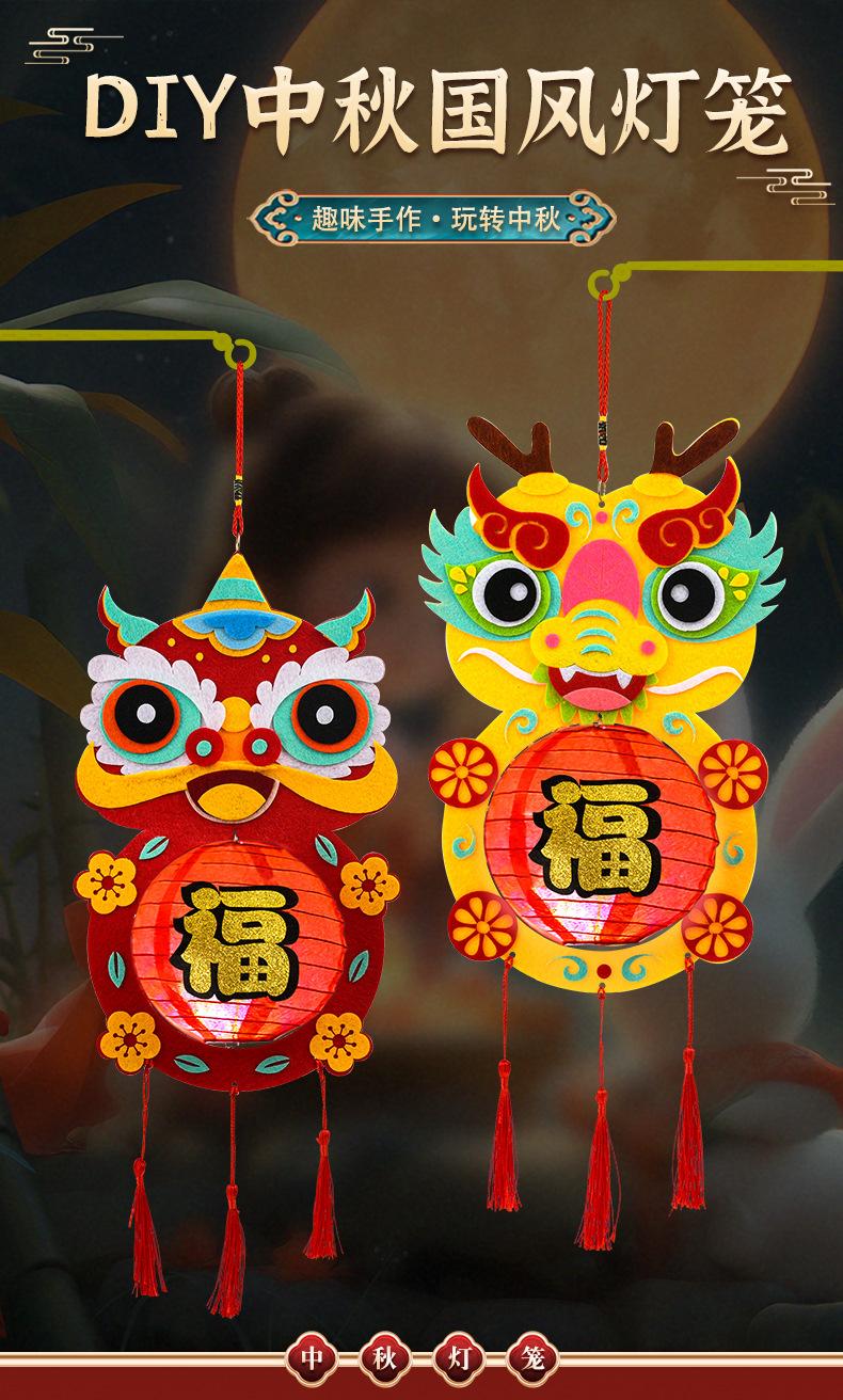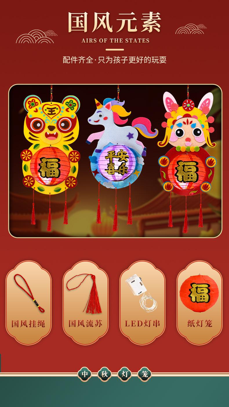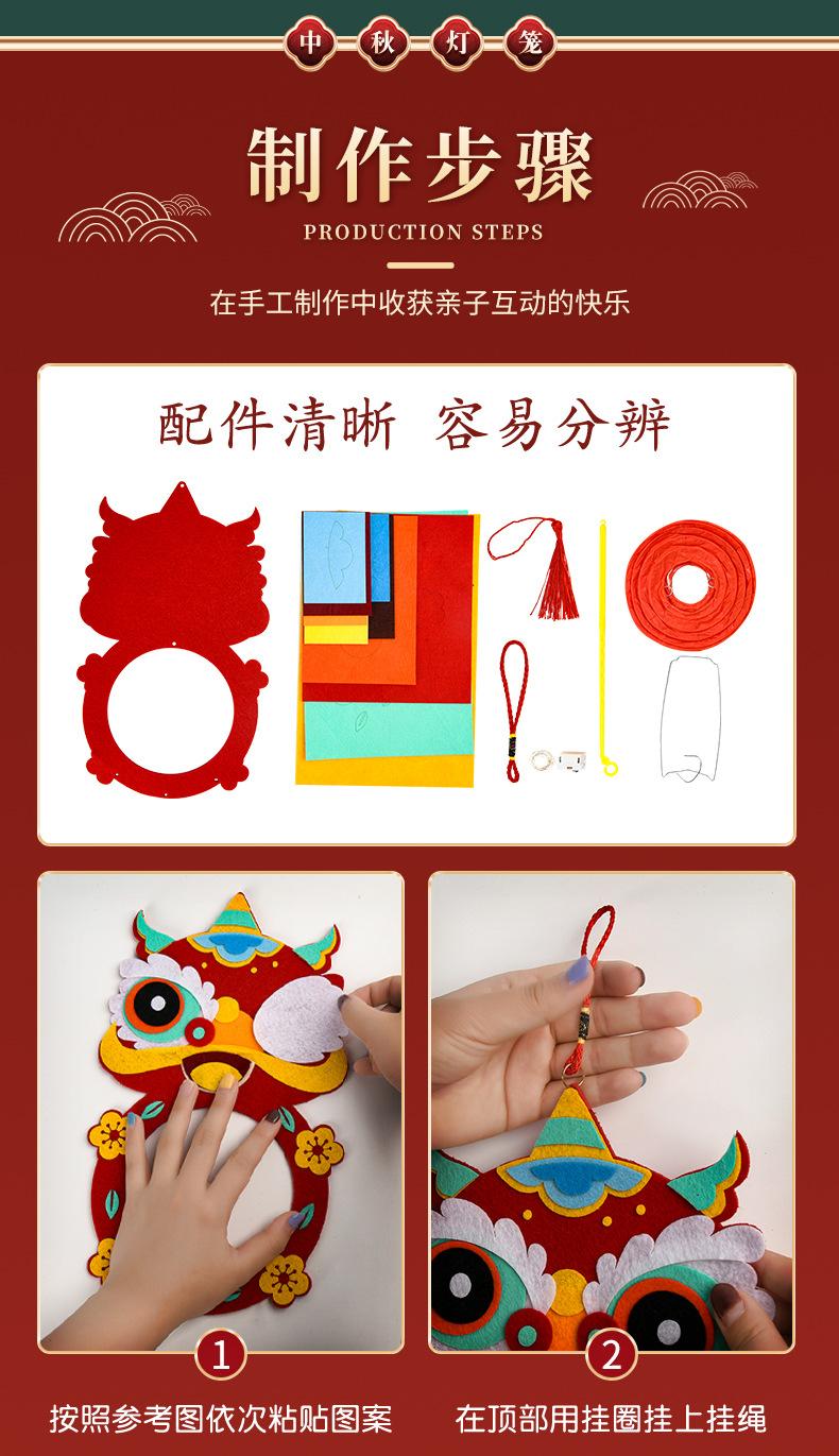 Festival del Medio Otoño Linterna Pequeña Hecha a Mano DIY Portátil para Niños Danza del León Linterna Roja Linterna Creativa Linterna de Dibujos Animados Portátil