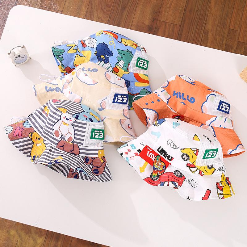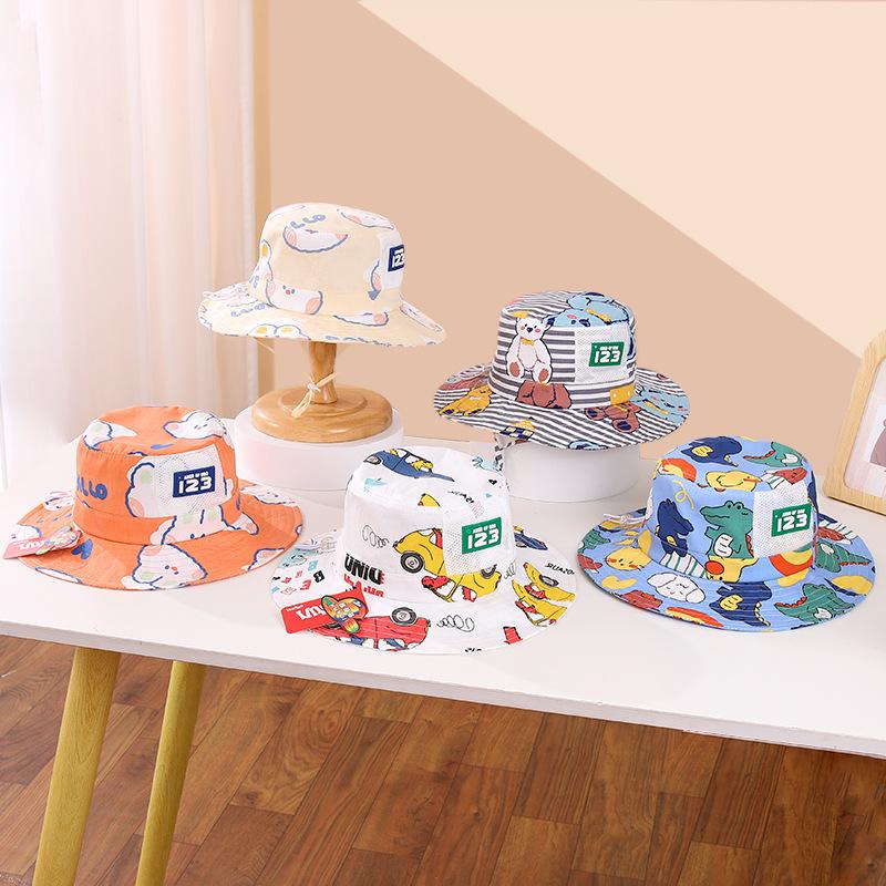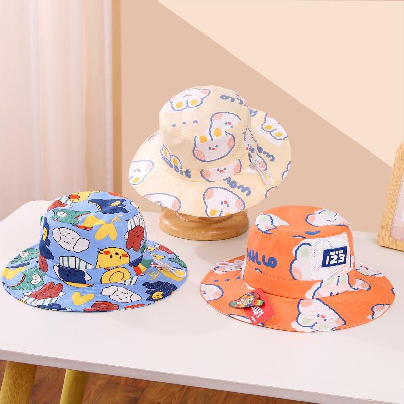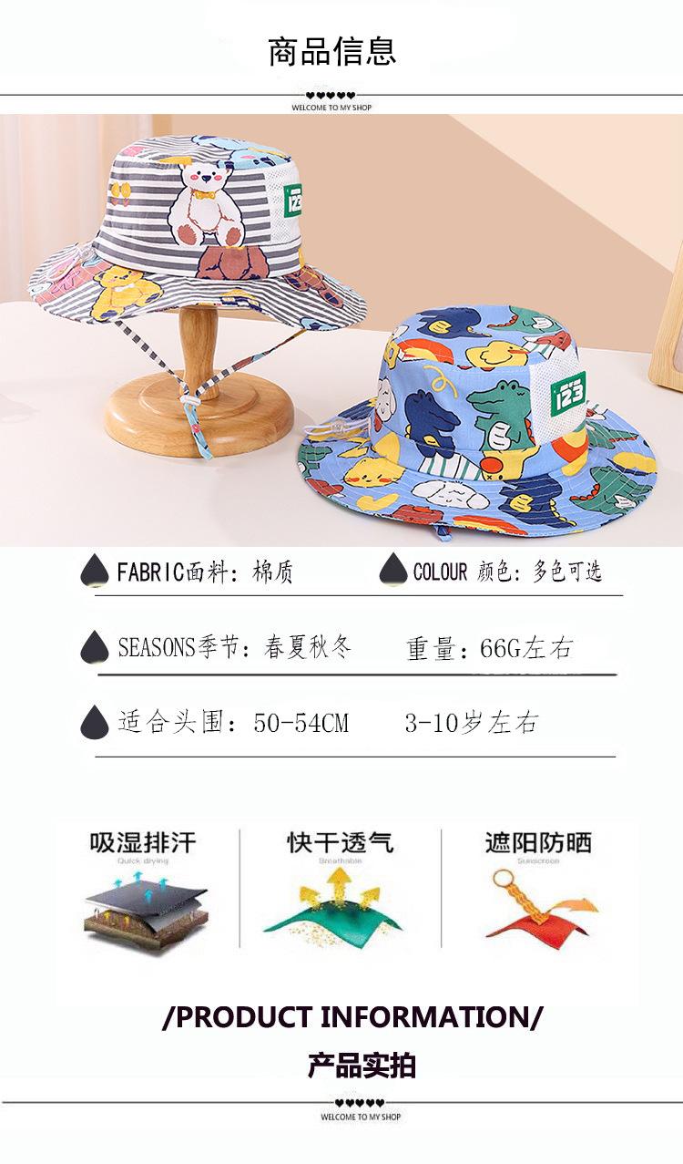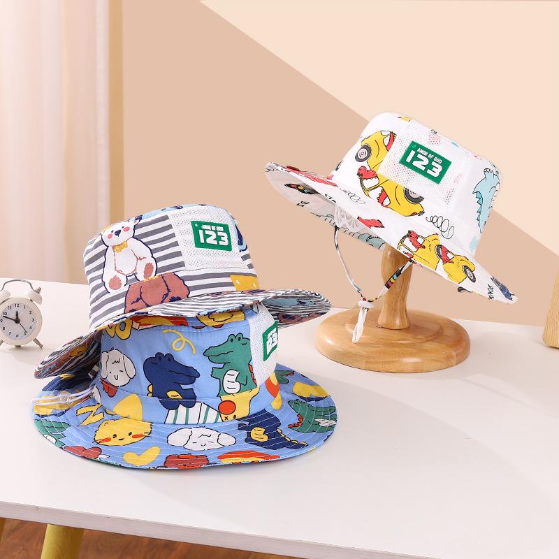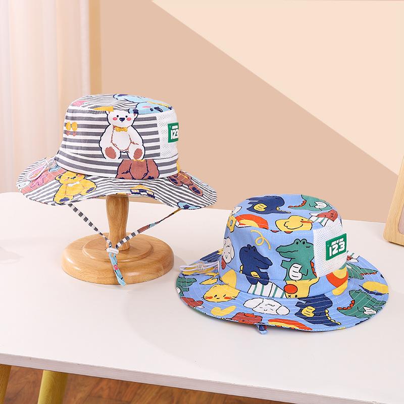 Sombrero de lavabo de primavera para niños, estilo japonés y coreano, estampado a color, sombrero de oso para niña, sombrilla de verano para niño, sombrero de pescador con ala grande