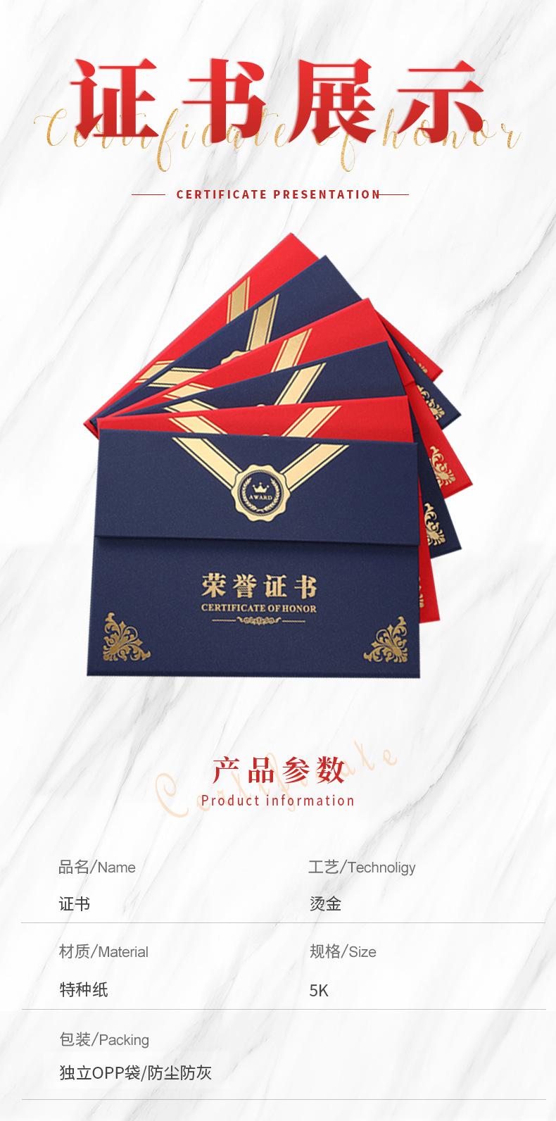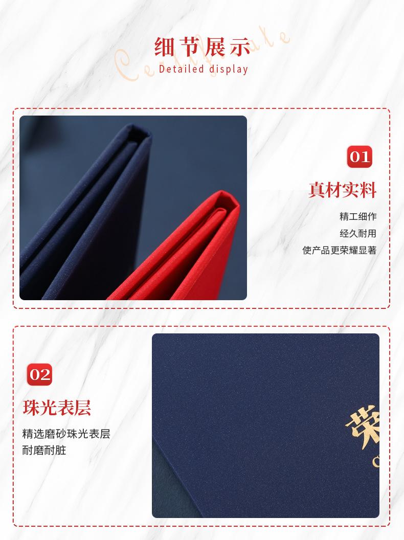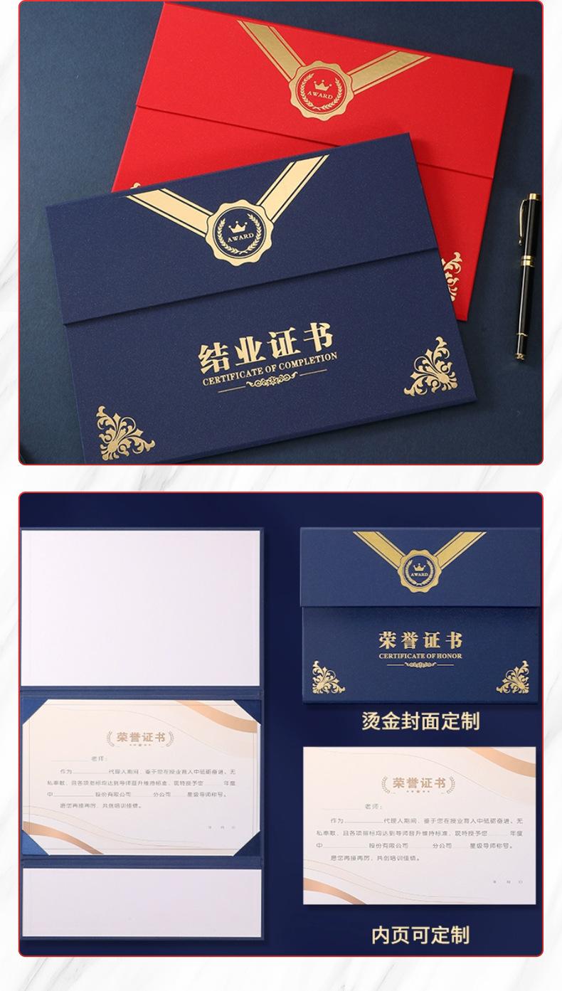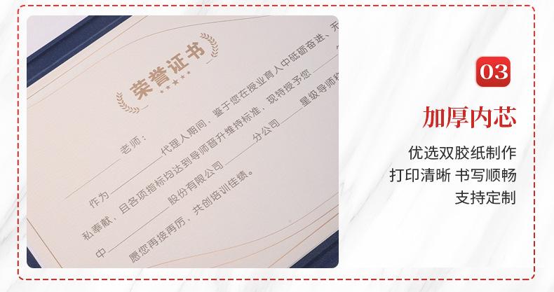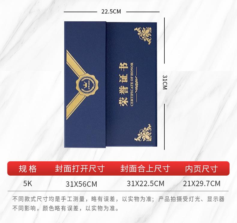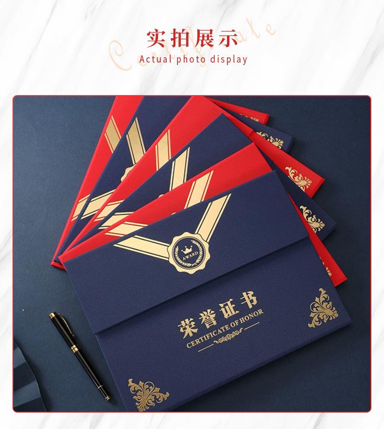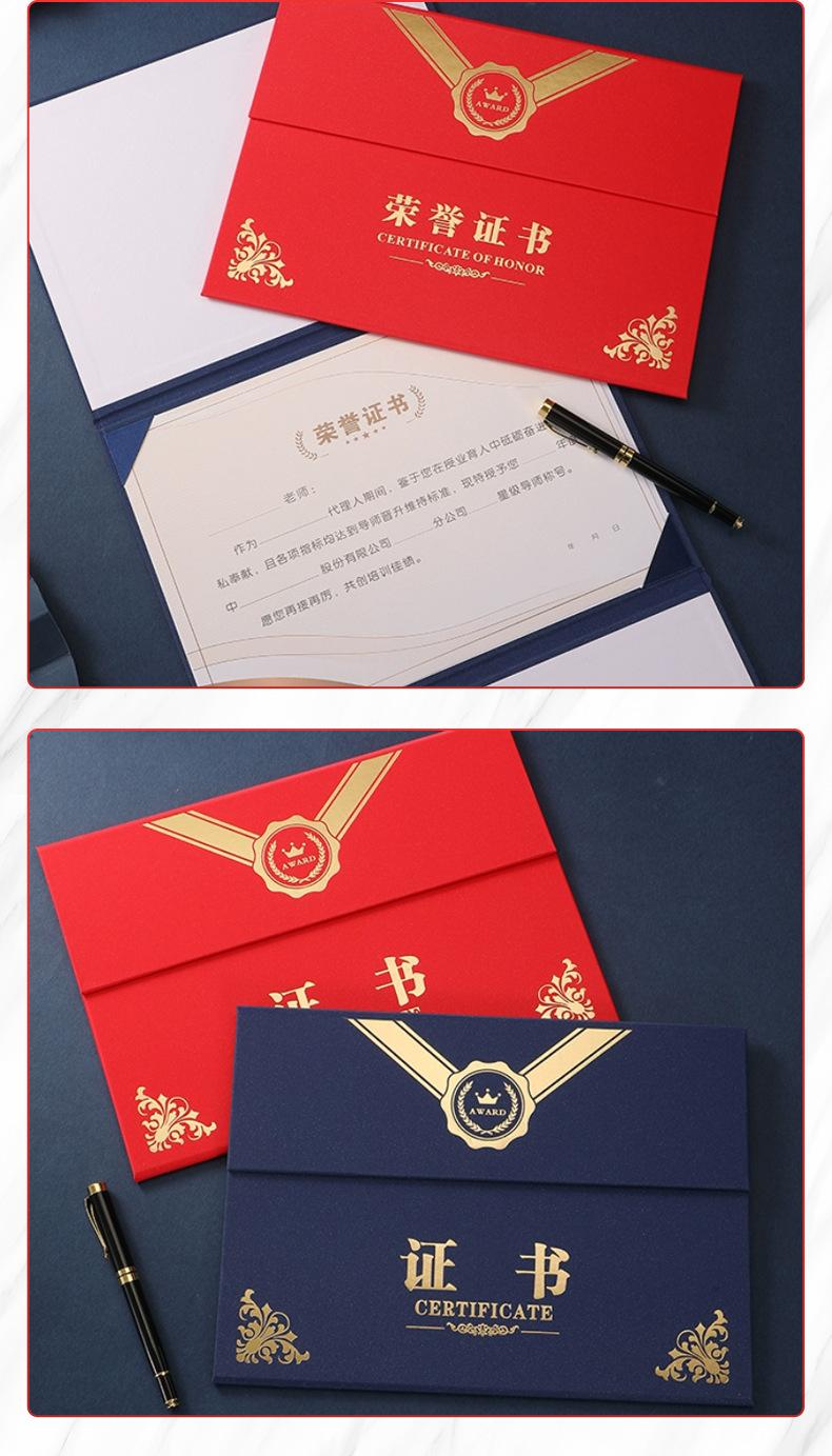 Nuevo certificado de honor nacarado triple versión horizontal personalizado concha de cierre impresión de núcleo interno logotipo personalizado bronceado