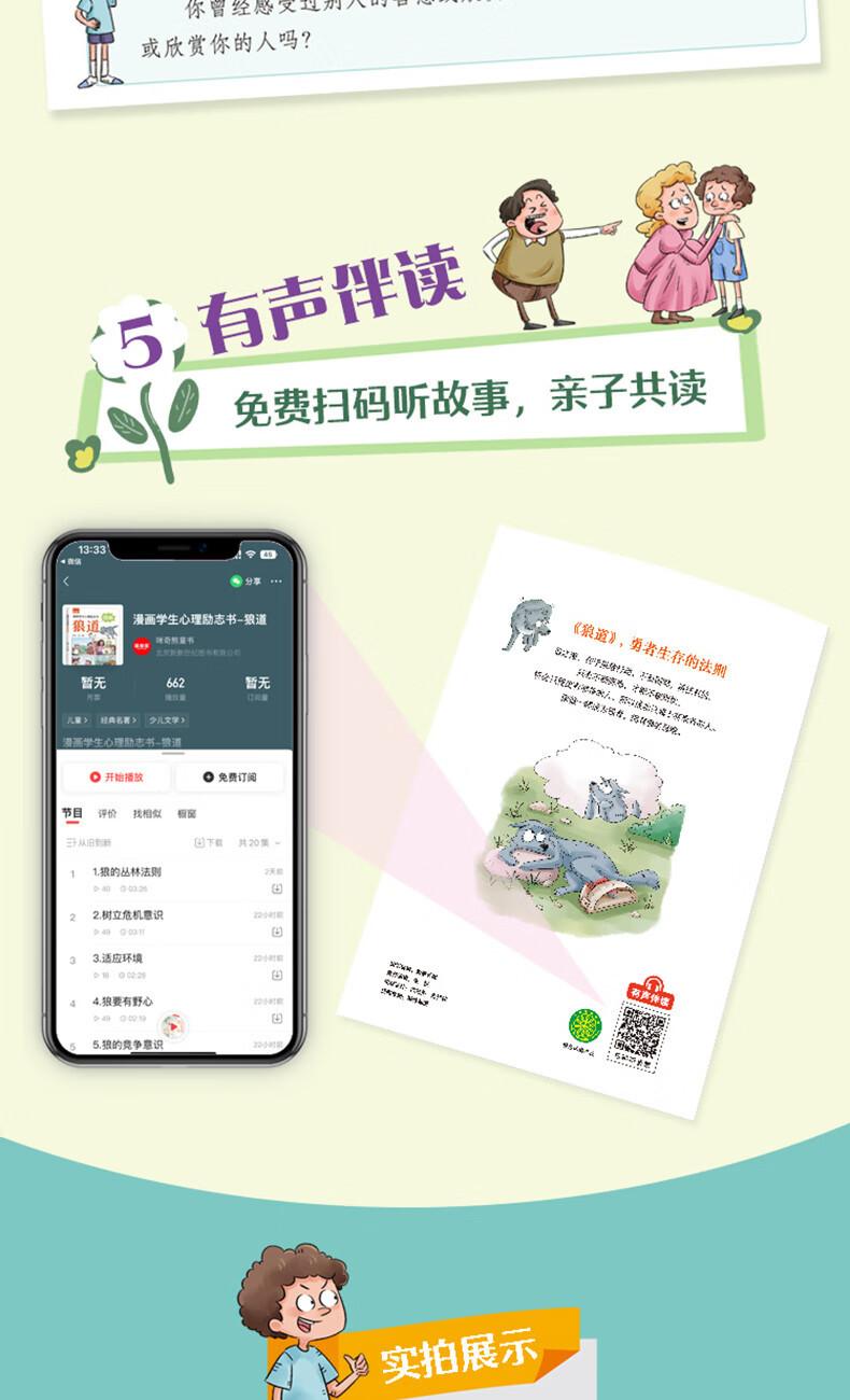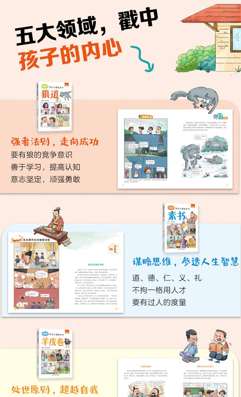Libro de inspiración psicológica para estudiantes de dibujos animados (Los 5 libros) Libro de pergamino de Wolf Road, libro sencillo, edición infantil