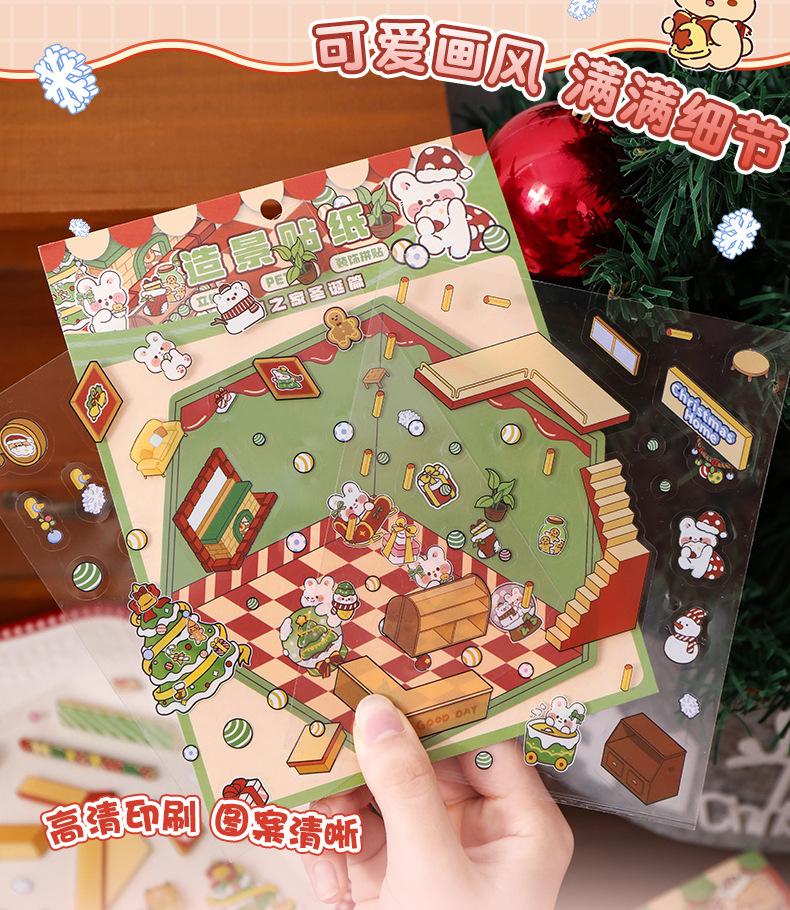 Cabina de simulación coreana, miniatura 3D, paisajismo, almacenamiento, pegatinas, apilamiento, escena creativa, pegatinas hechas a mano, bricolaje