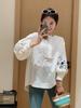 Blusa ligera de lujo estilo retro de Hong Kong con cuello en V y hebilla, talla grande 3331, diseño de estilo chino nuevo para mujer, protección solar, moda 2024