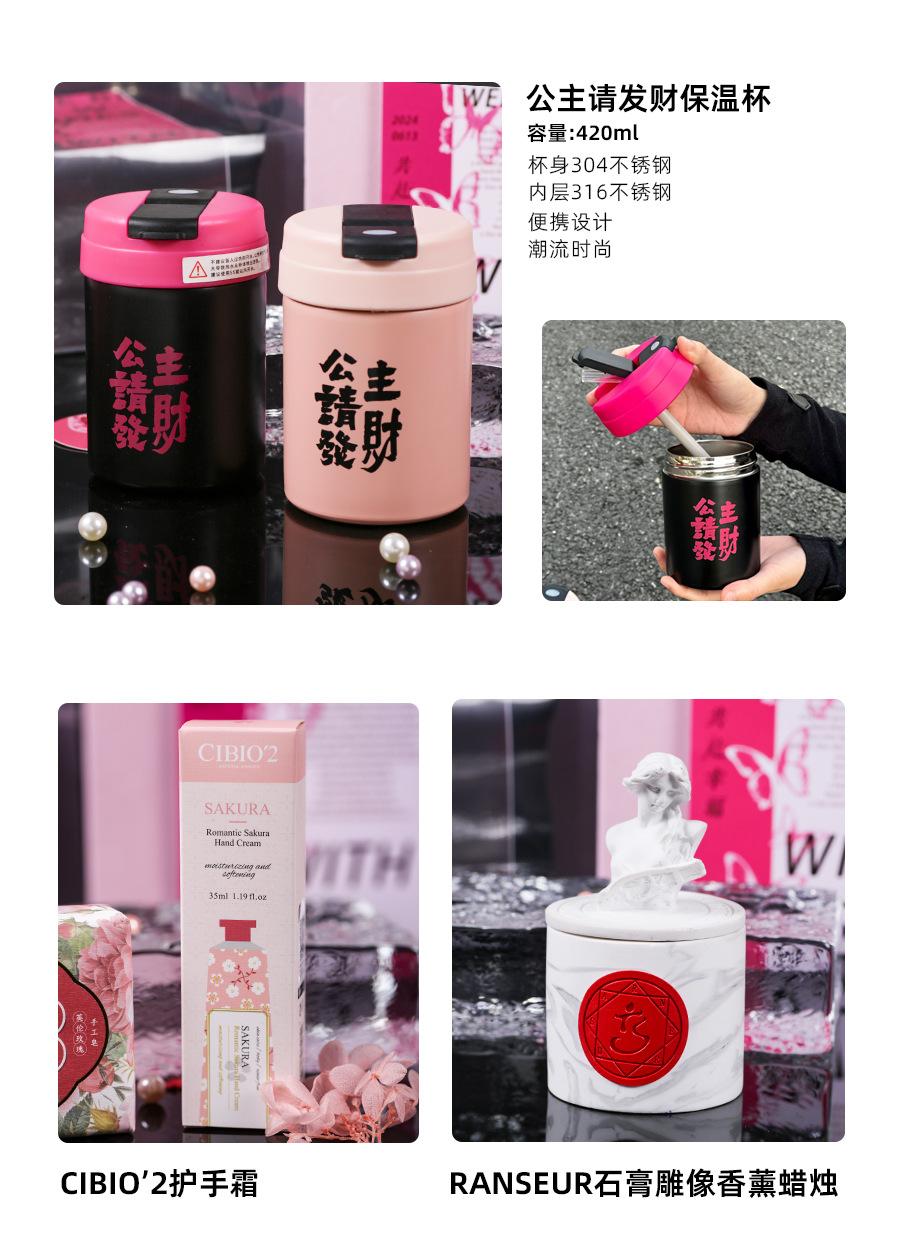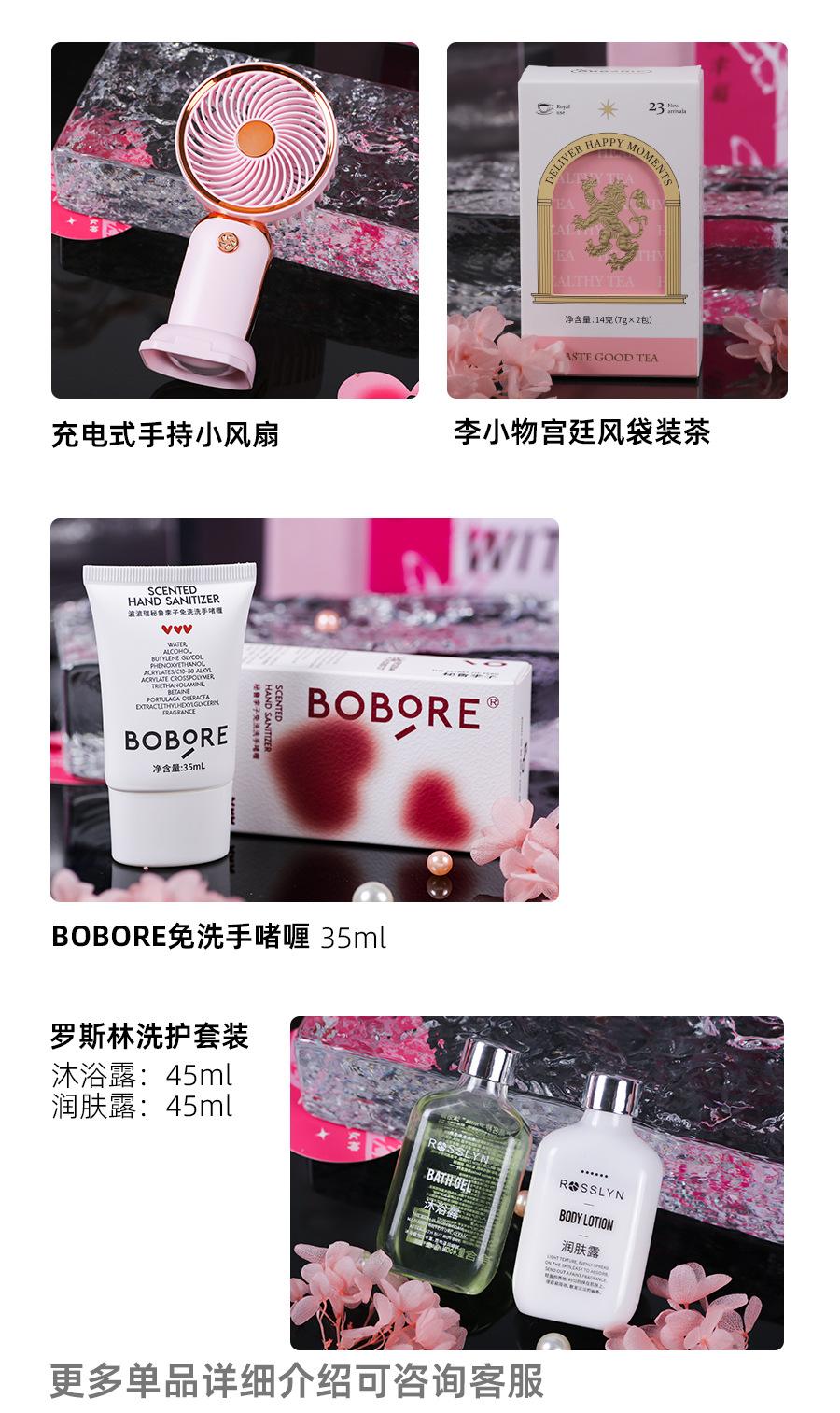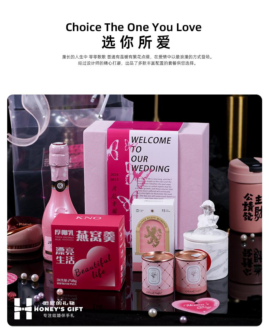 Pink empty gift box (comes with carrying bag), Pink package one, Pink package two, Pink package three, Pink pa...