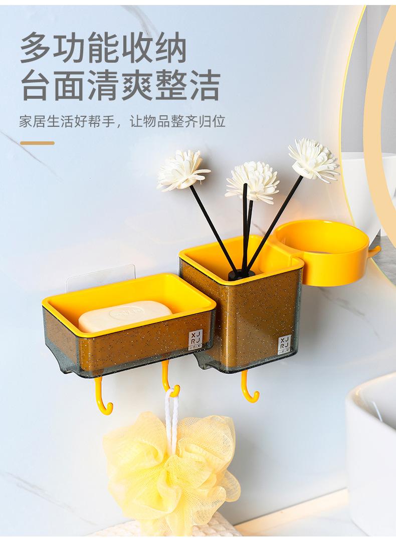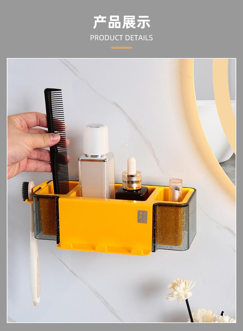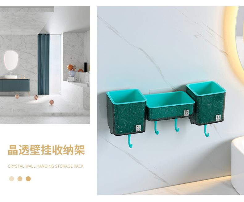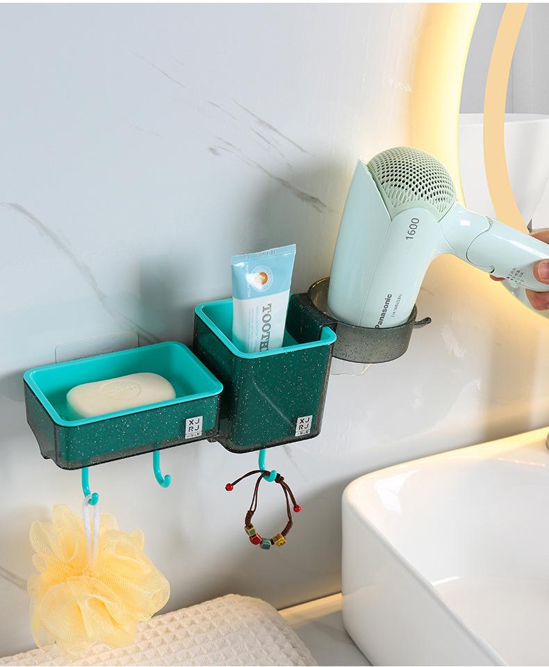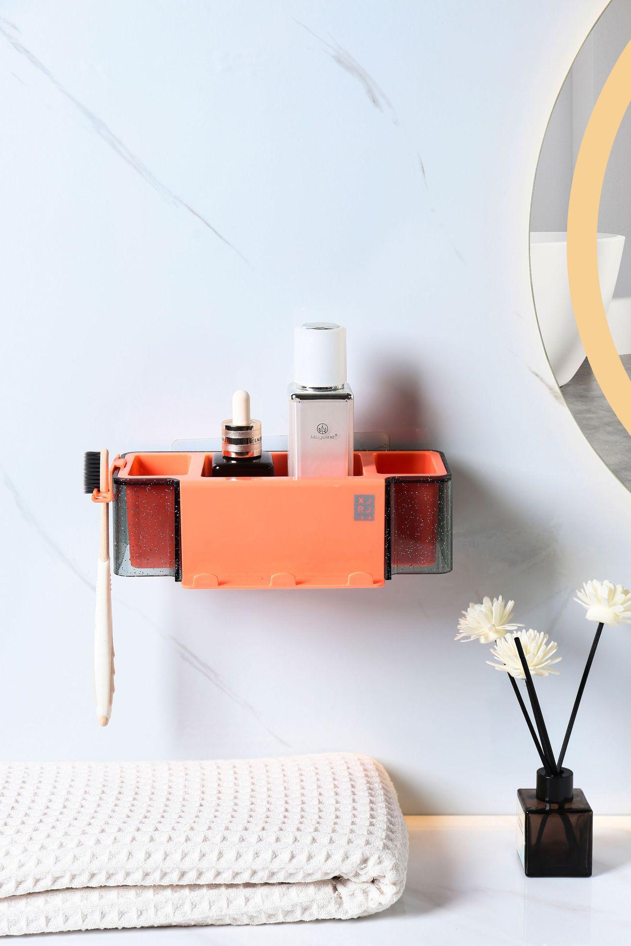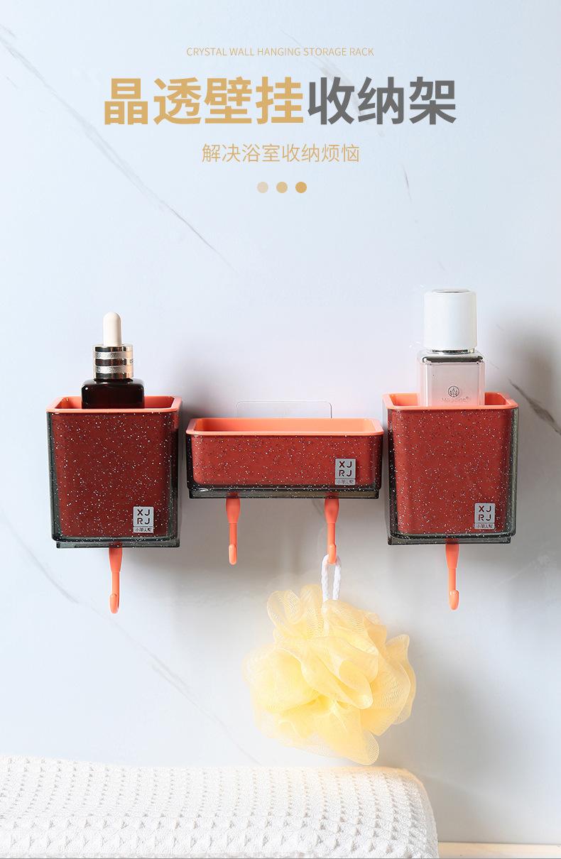 Estante de almacenamiento para baño transparente de cristal sin estante de plástico perforado con gancho para almacenamiento en la pared