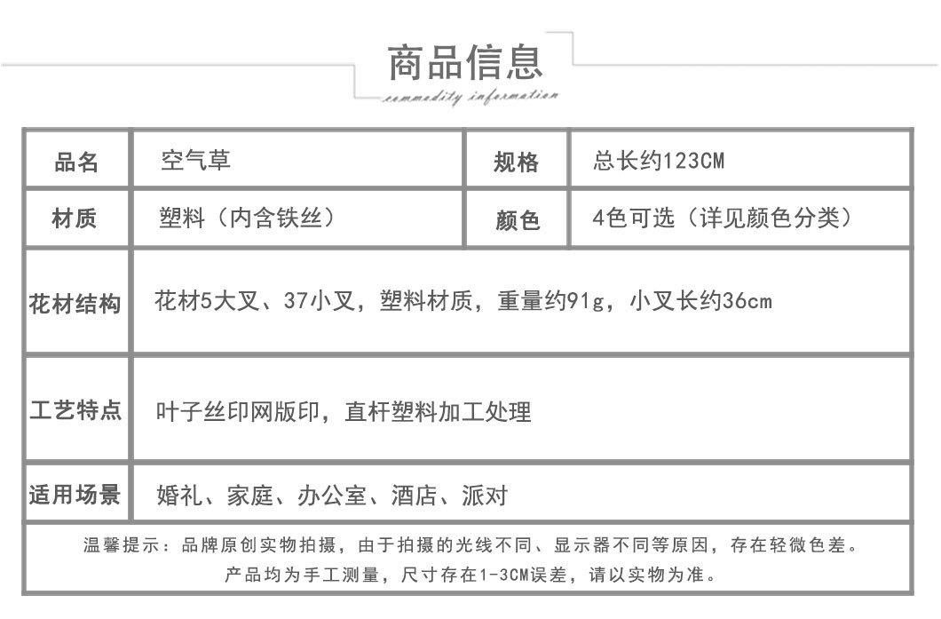 Pasto de Aire Planta Verde Artificial Paisajismo Planta Verde Falsa de Alta Gama Rama Artificial Arreglo Floral Terminado para Boda