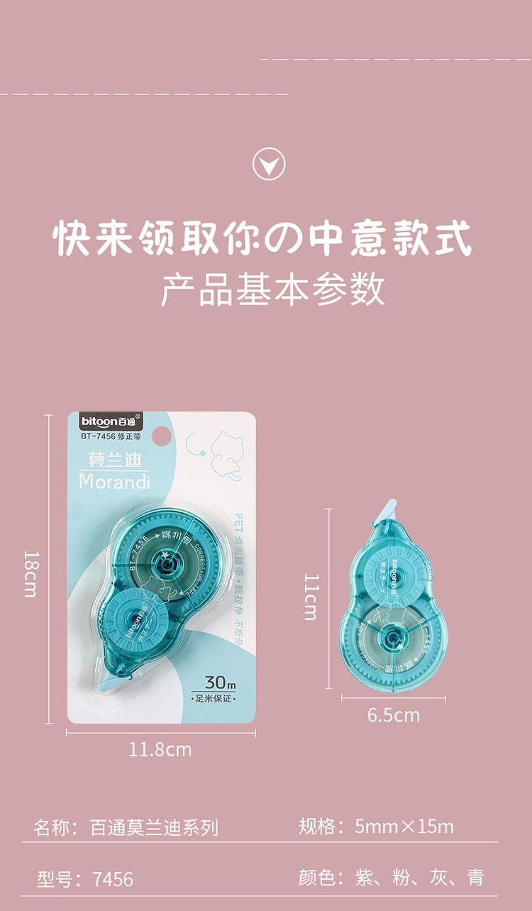 Cinta correctora serie Morandi de 30 m asequible de forma fija de gran capacidad candy mediana núcleo PET