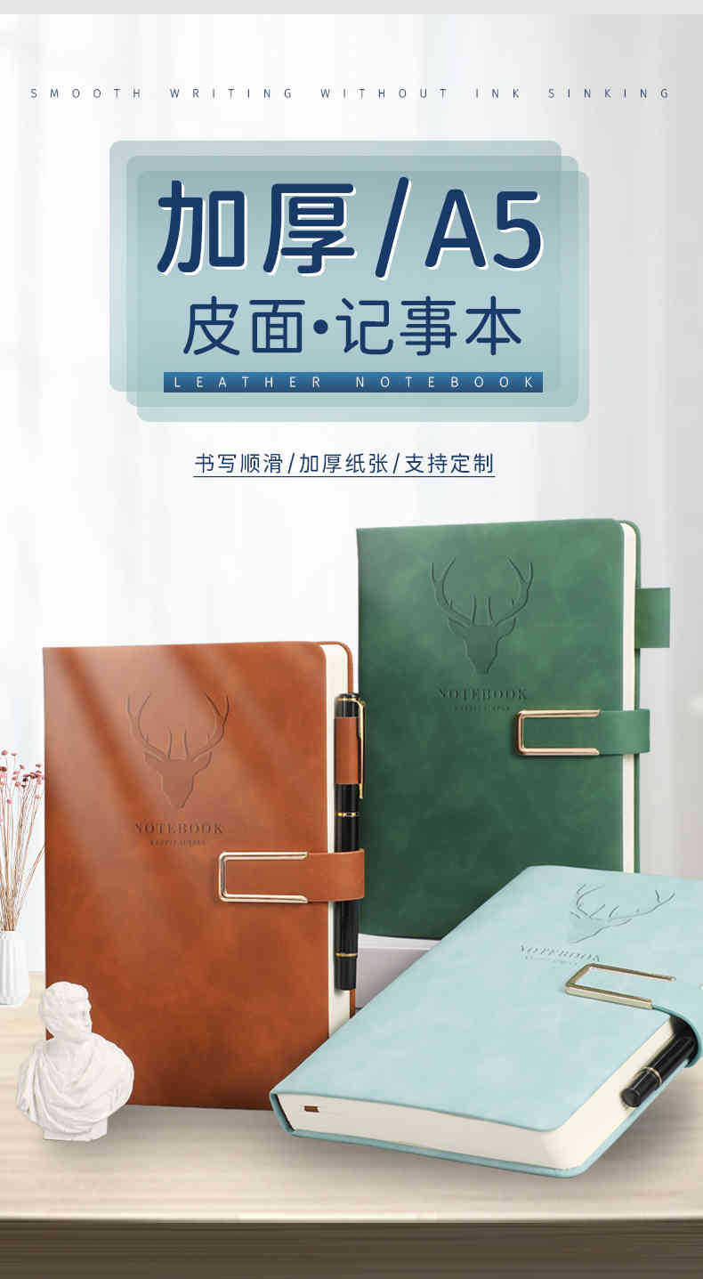 Cuaderno de cabeza de ciervo, grueso, de cuero A5, para estudiantes universitarios, estilo retro, sencillo, con botón magnético