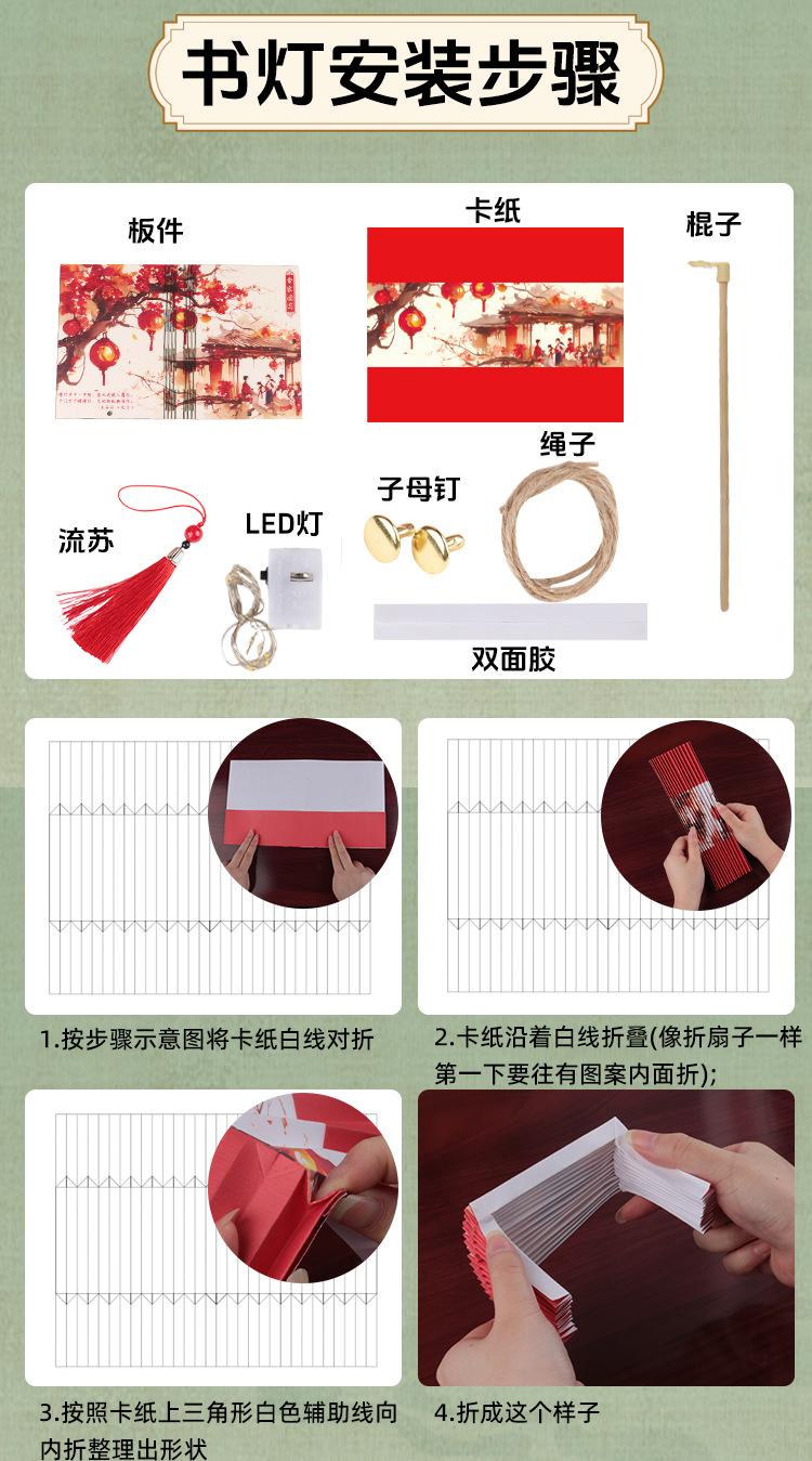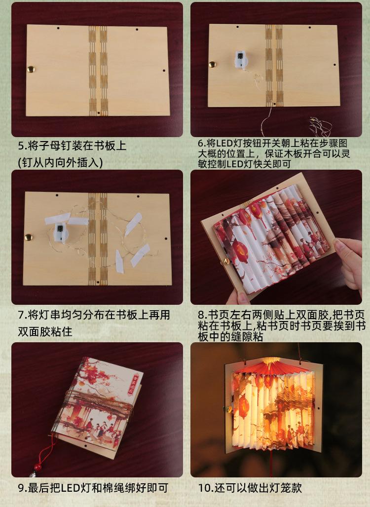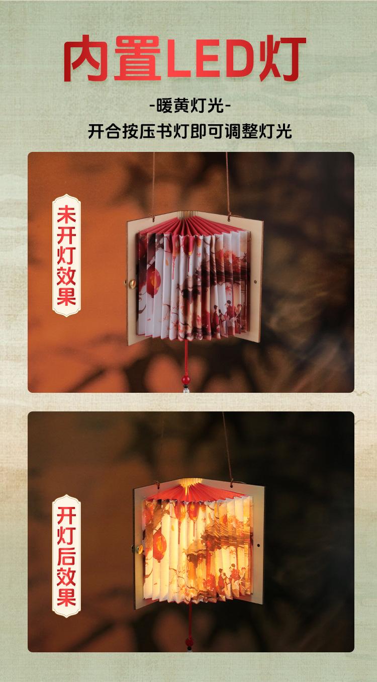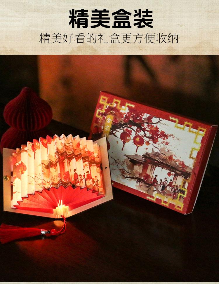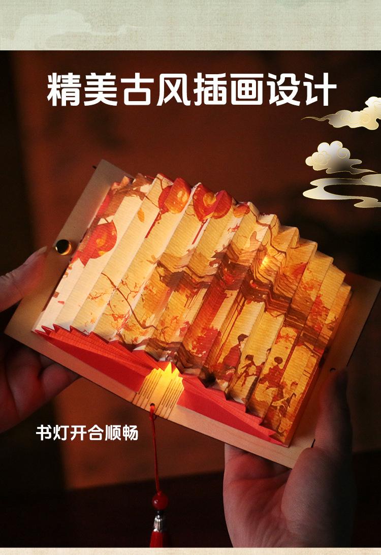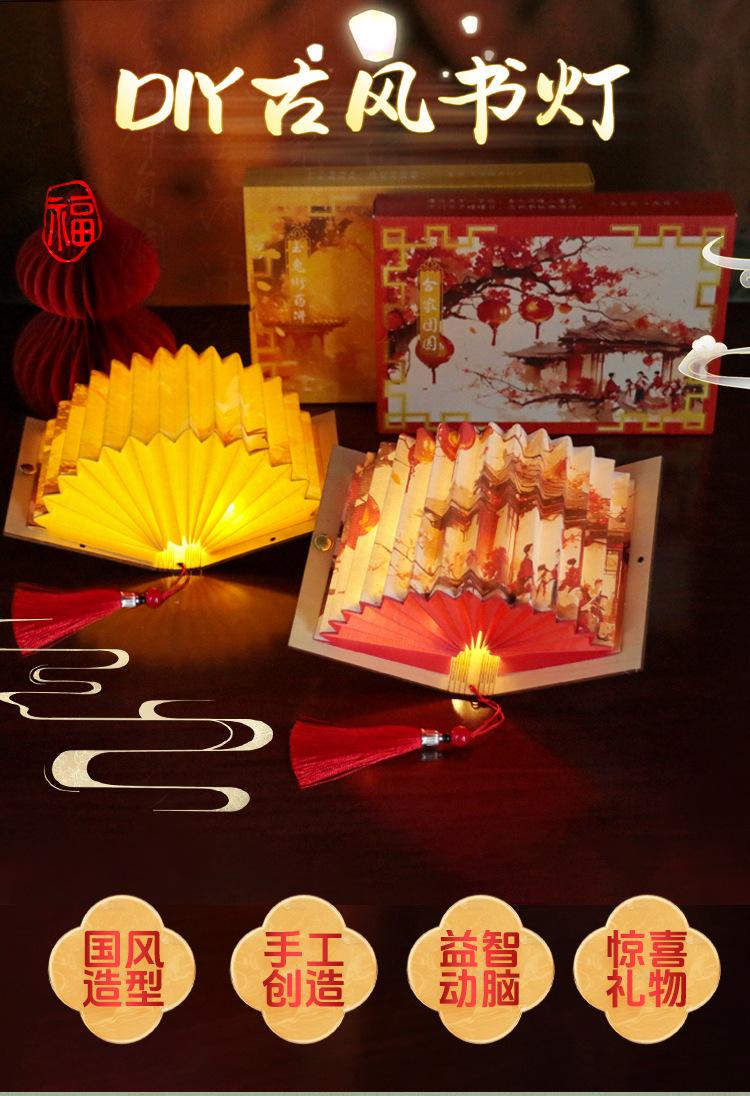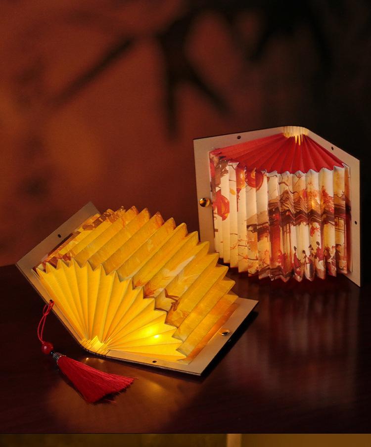 Festival del Medio Otoño 2025 DIY Lámpara de Libro de Estilo Antiguo Luz Nocturna Plegable en Forma de Abanico Linterna Portátil Regalo Hecho a Mano de Estilo Chino