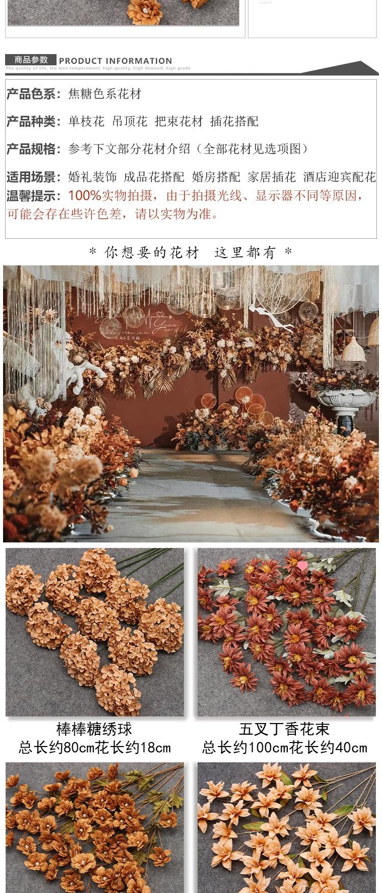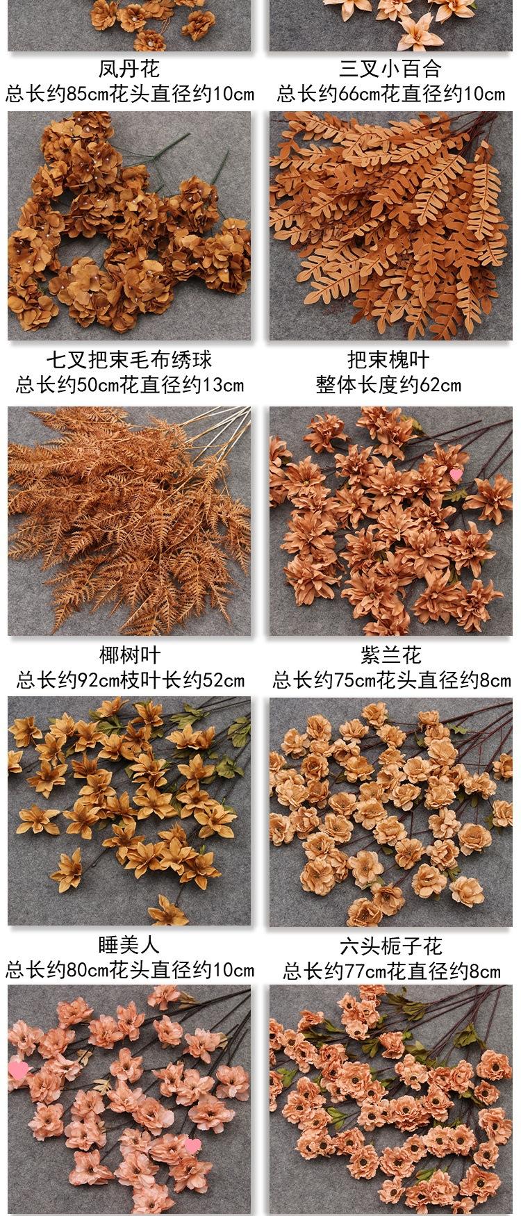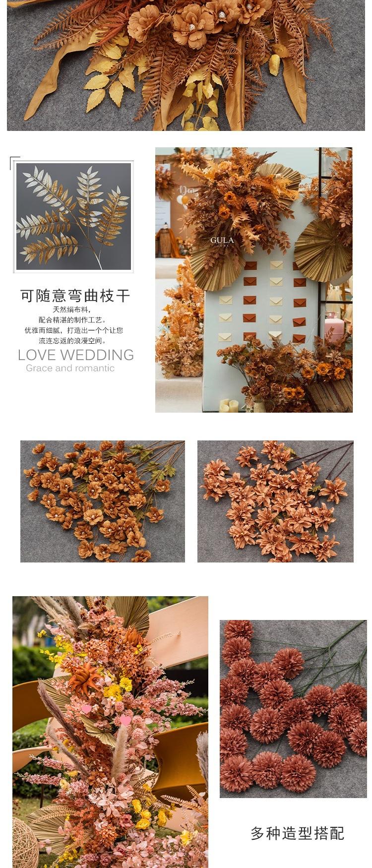 Material floral de línea de caramelo de 10 ramas flor arreglo floral guía de camino de boda decoración de fondo arte floral boda flor falsa flor marrón